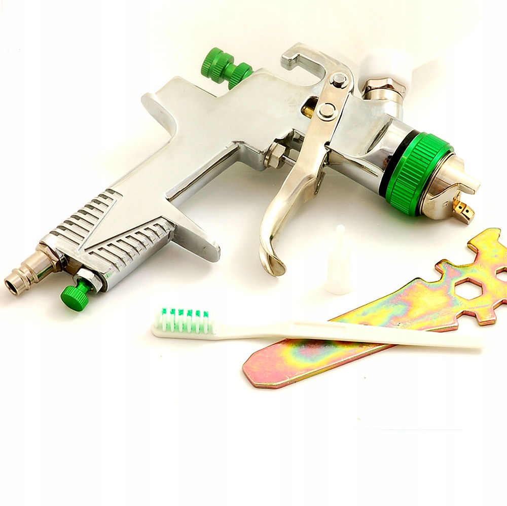 Представленный пистолет -известная компания SICO в профессиональной линии. Это сделано в технологии RP, что означает, что это обычный пистолет с высоким давлением, в котором давление воздуха одинаково для подачи насадки на сопла и для его распыления. РП -пистолеты являются наиболее часто используемыми лаками -пистолетами. Предлагаемый пистолет имеет сопла 1,7 -размеров Этот пистолет имеет три точечного регулировки давления, размер потока и количество распыленного материала. Ручка регулировки давления помещается рядом с резьбой подключения в нижней части ручки