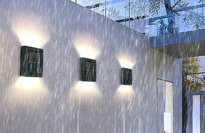 Солнечные лампы отлично смотрятся в качестве украшения забора или фасады.