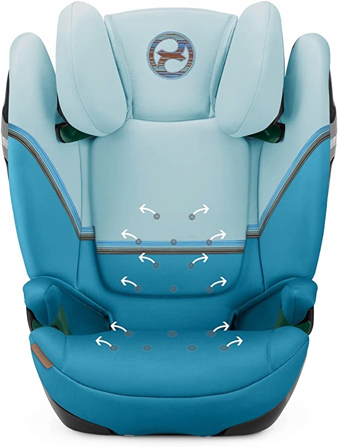 Другие особенности сиденья Cybex Solution S 2 i-Fix i-Size. Регулируемая спинка облегчает установку сиденья в автомобиле. Полностью вентилируемая оболочка повышает уровень комфорта во время путешествия. Новое, еще более широкое сиденье
