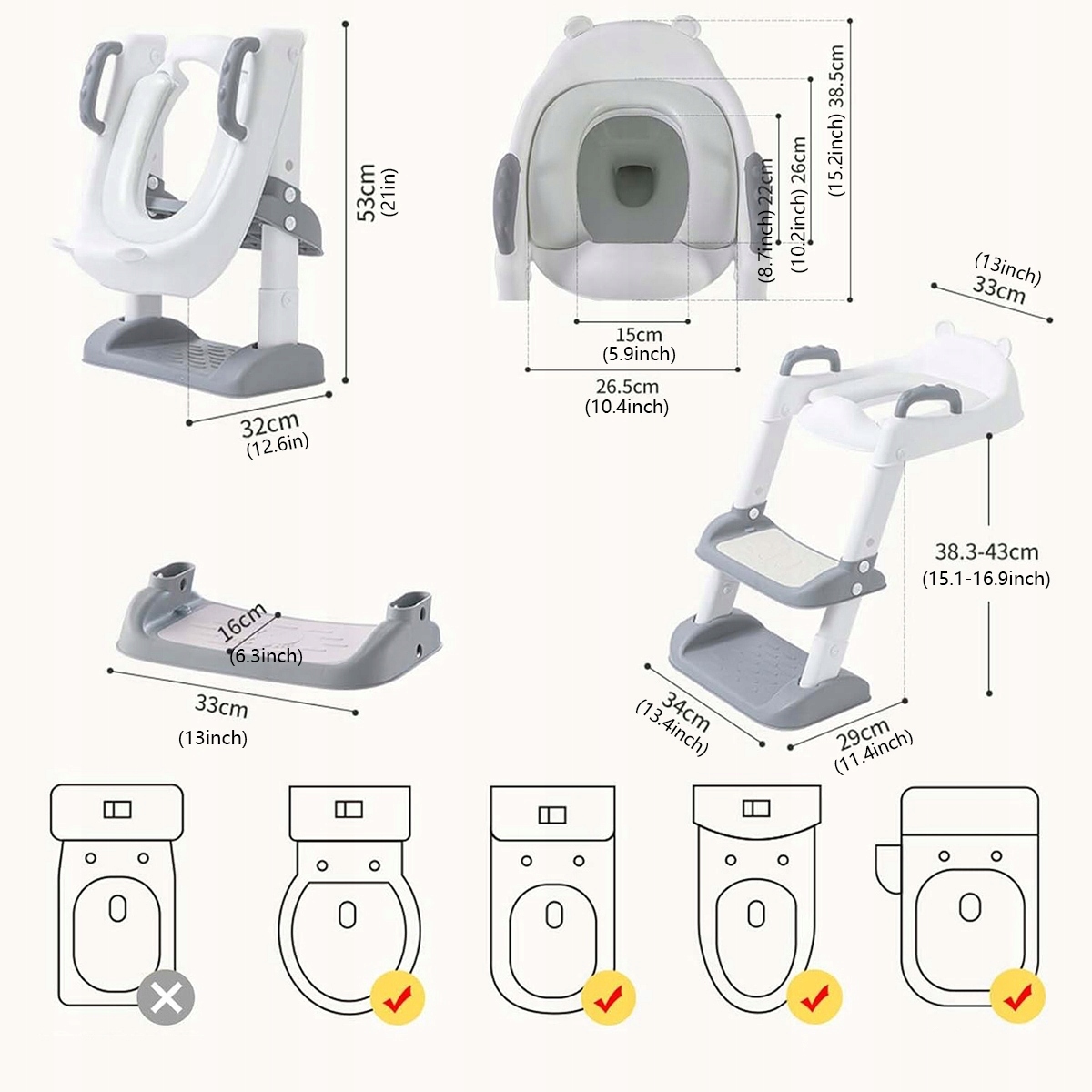Благодаря двум поручням и широкой педали сиденье для унитаза позволяет детям самостоятельно входить и выходить из него. Он позволяет детям безопасно и комфортно пользоваться туалетом, а регулируемая высота позволяет подогнать его под детей разного роста, что способствует эффективному приучению к горшку.