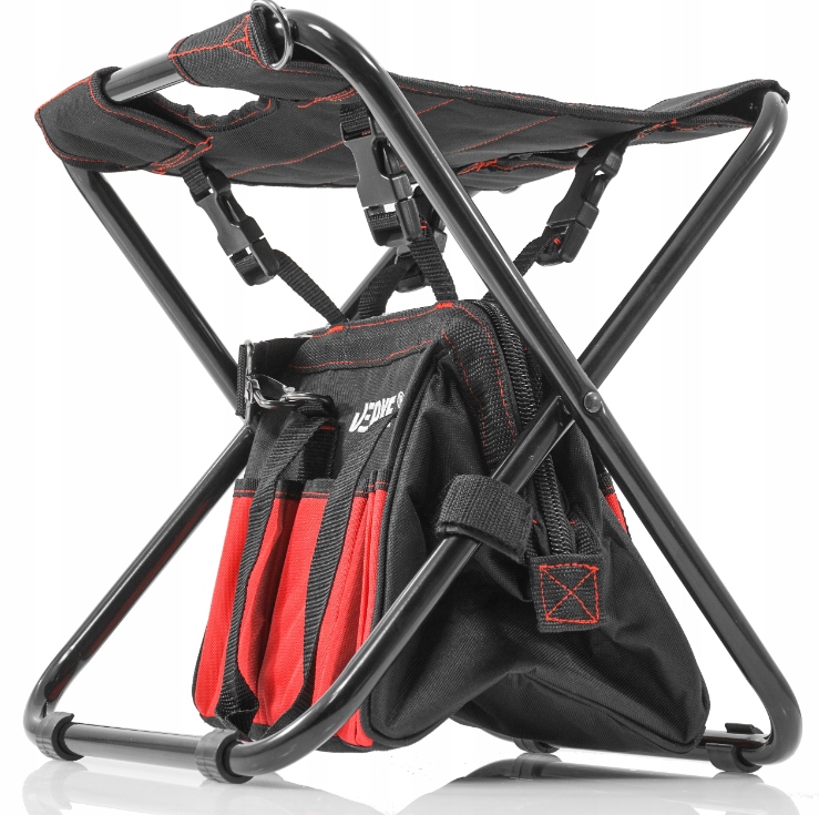 Складный табурет с подготовительной сумкой из прочного полиэстера 600 D. Плековой ремень и многочисленные внешние карманы. Размеры сумки 29x19x21 см