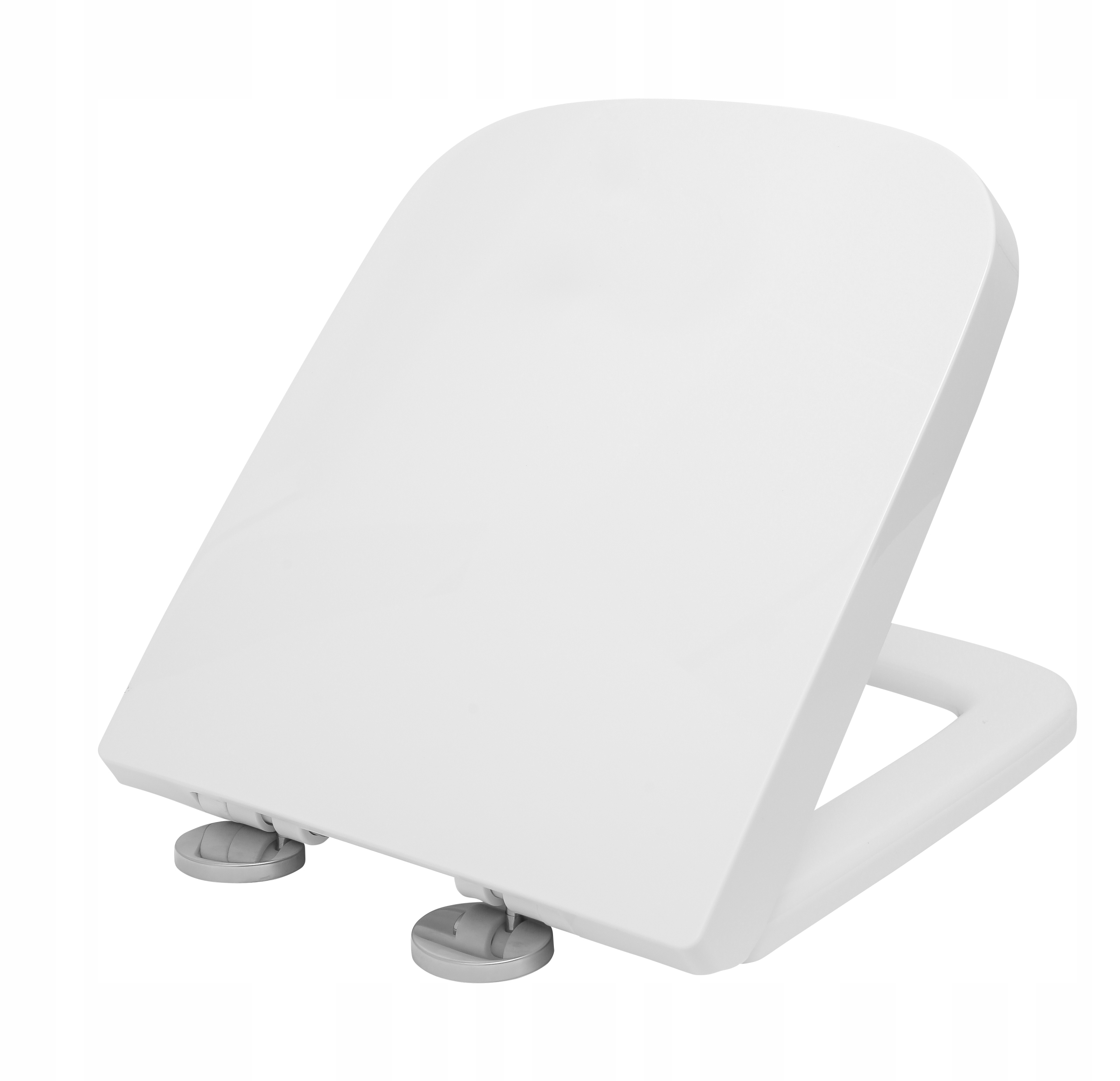 Сиденье для унитаза с плавным закрыванием, ПРЯМОУГОЛЬНОЙ формы с системой легкого снятия, легкой регулировкой и антибактериальными свойствами, изготовлено из полипропилена.