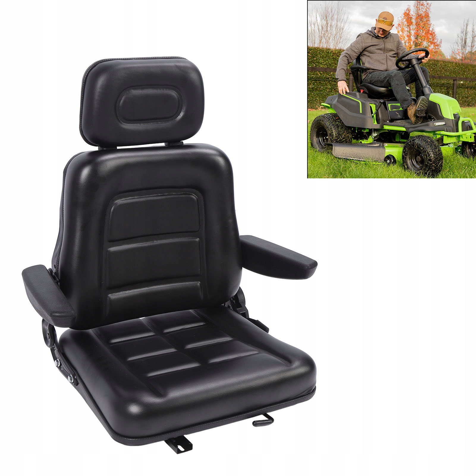 3. Премиум материал: сиденье косилки состоит из кожи из ПВХ и металла с высокой силой, что является доказательством износа и царапин и может поддерживать длительный срок службы в различных сложных условиях и снижать частоту обмена.