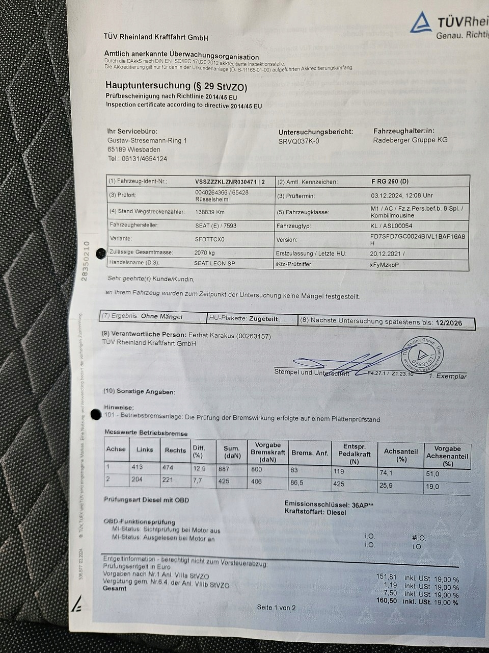 ☑ Курс подтвержден сервисной книгой и немецкой TUV. НДС-Марга. (Покупатель освобожден от гербового сбора 2%) место.