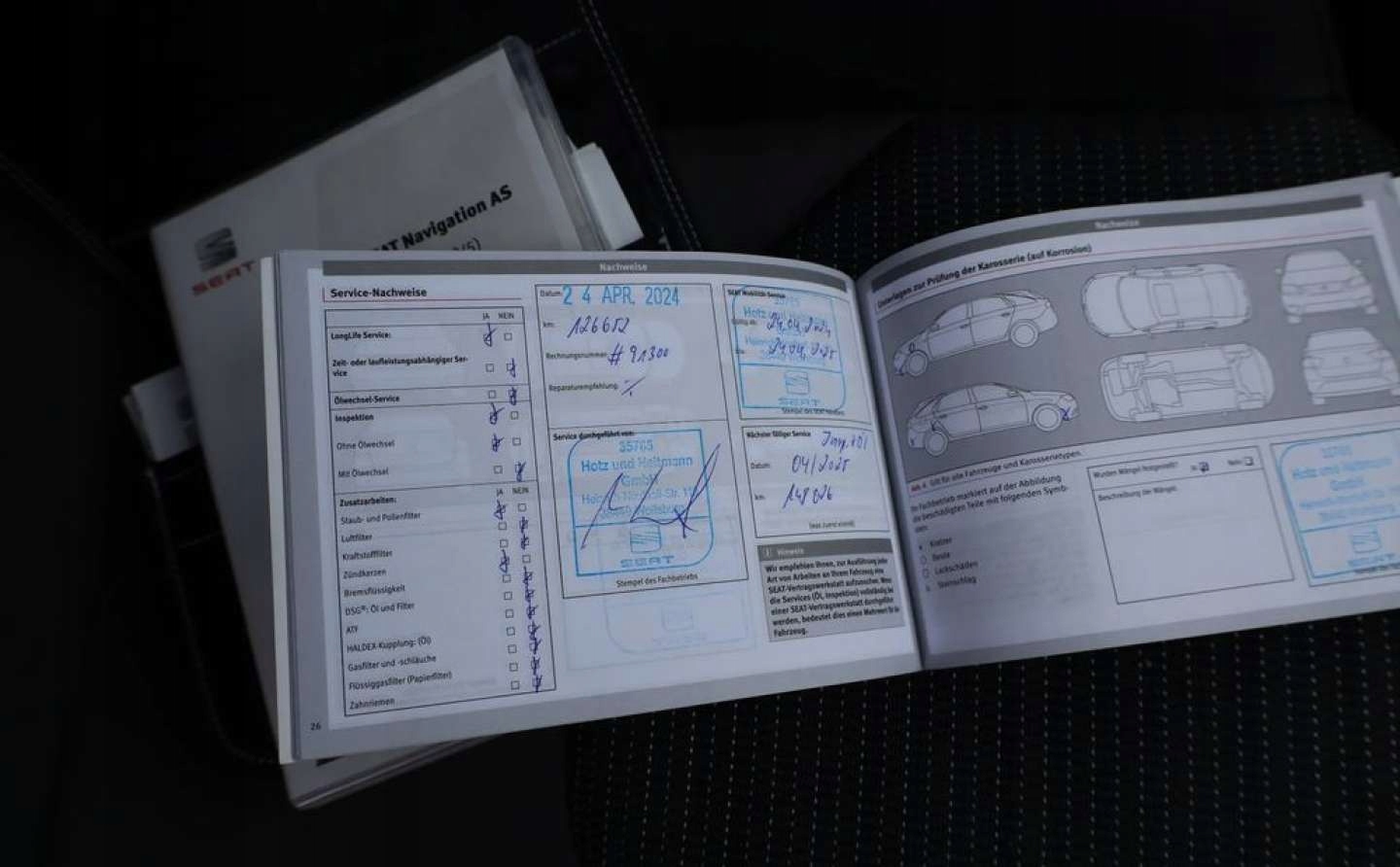 Автомобиль, обслуживаемый на ASO, последнее осмотр с изменением масла, проведенного при 126,657 км в 2024
