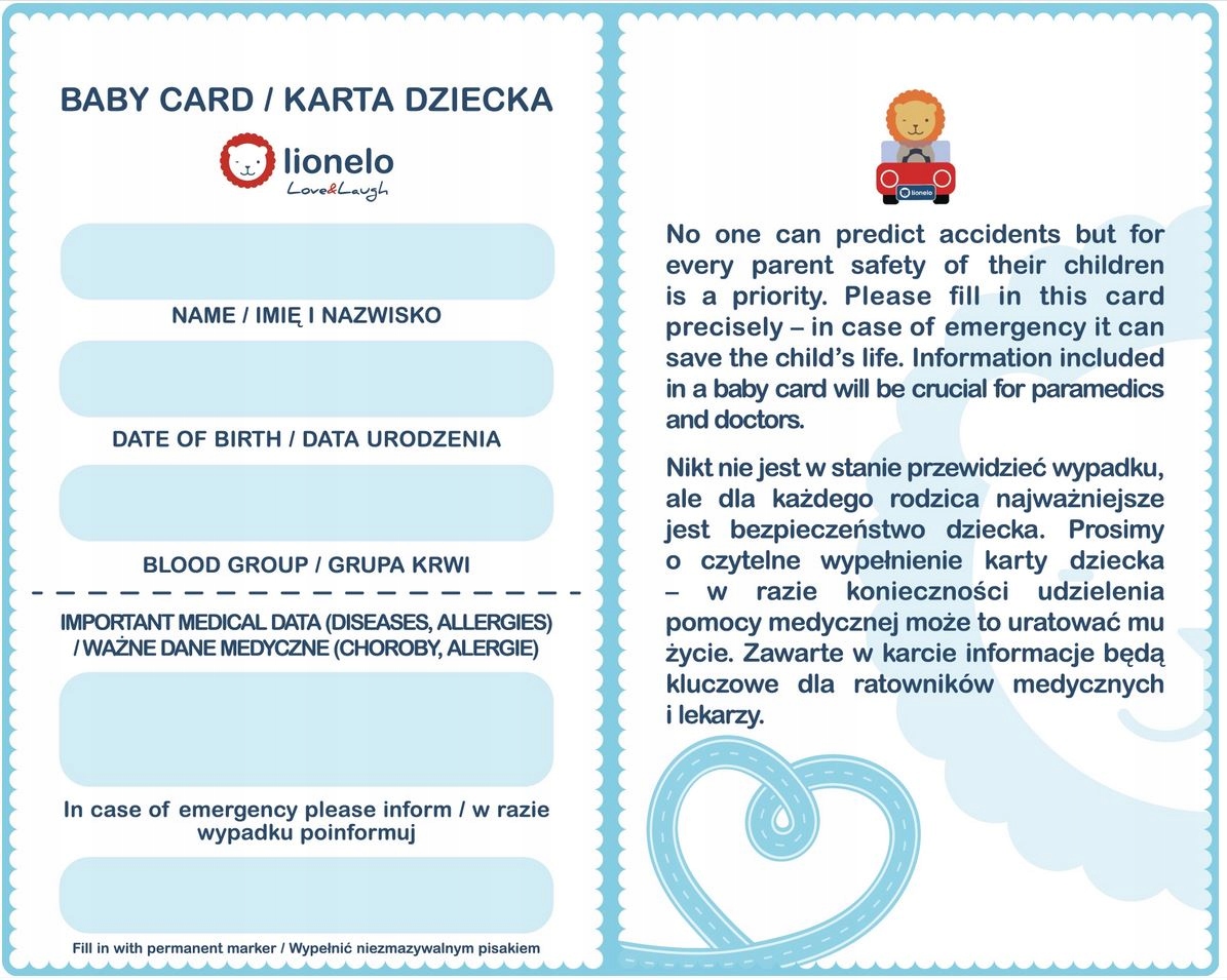 Детская карта – это передатчик информации о ребенке, его группе крови, заболеваниях и аллергия. Она предназначена для размещения на видном месте для автокресла, чтобы в случае аварии на дороге спасатели, вытаскивающие ребенка, сразу заметили наличие карты. Это существенно ускоряет медицинские действия при несчастном случае.
