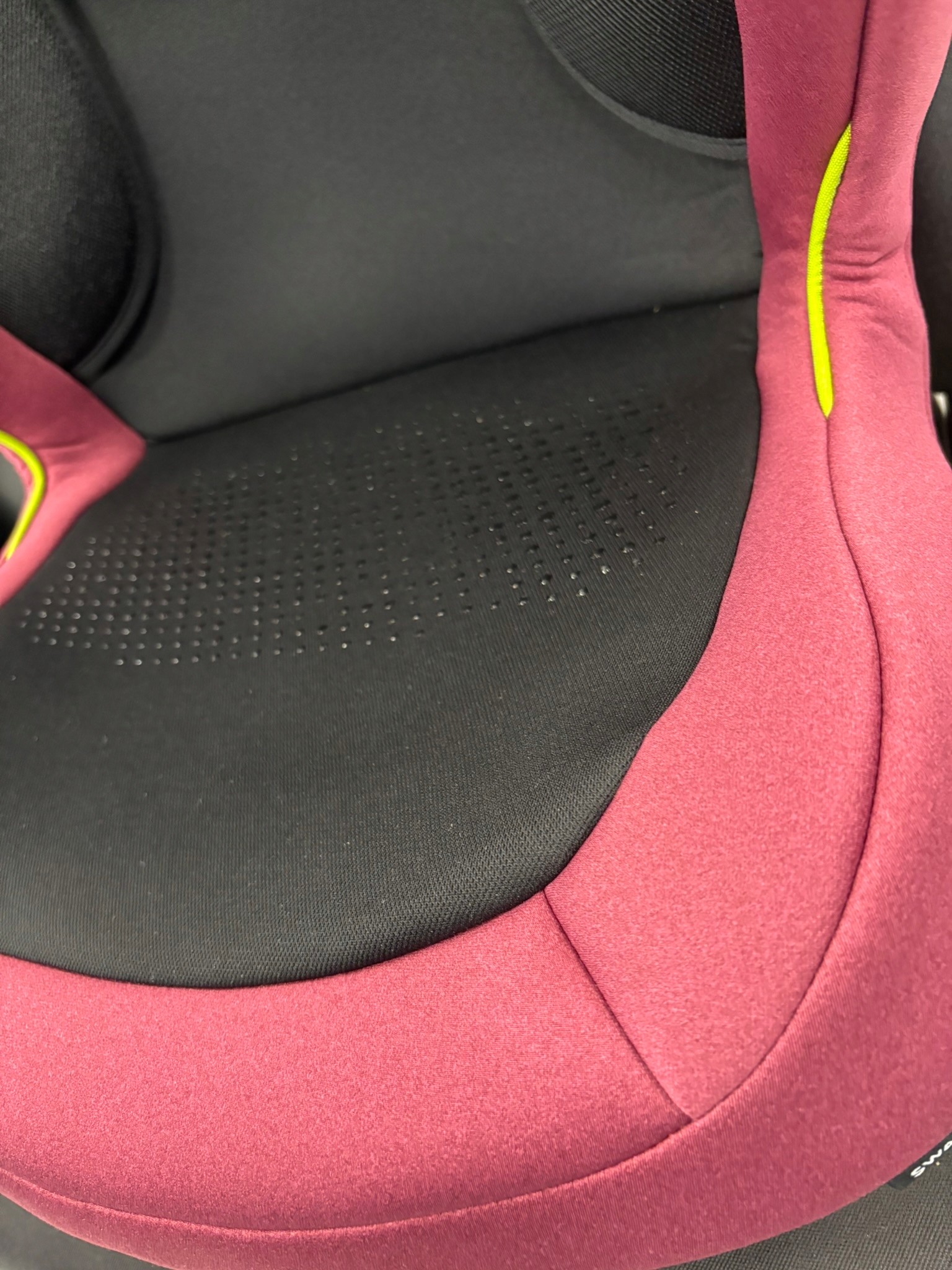 Интересно, что, несмотря на отсутствие типичных подлокотников в качестве нижних направляющих ремня или отсутствие четвертой точки для направления ремня между ног ребенка, продуманная форма сиденья Конструкция влияет на очень важное правильное расположение ремня. бедра.