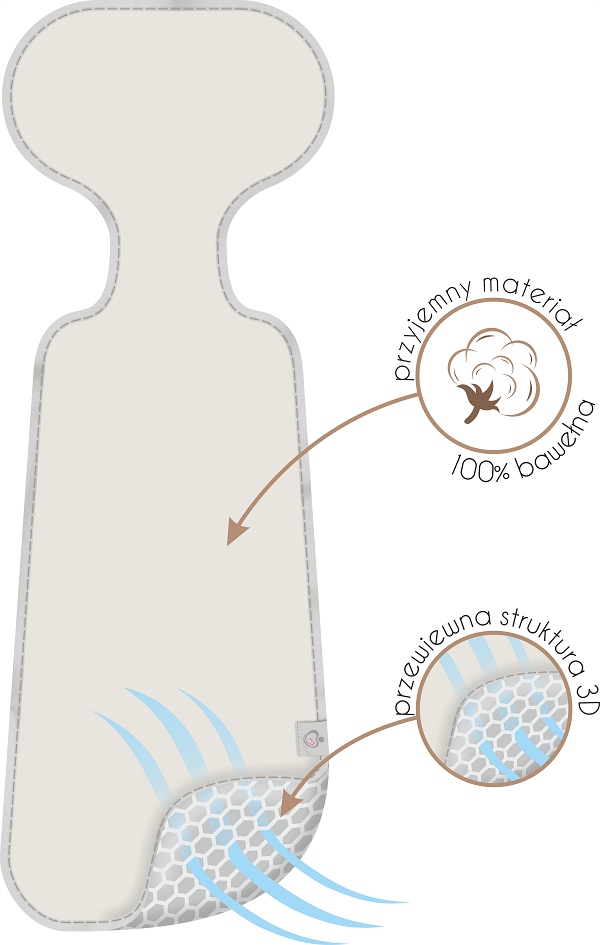 Вставка против пота из 3D-сетки – незаменимая вещь для каждого родителя, который заботится о здоровье и комфорте своего ребенка. Использование инновационных технологий обеспечивает оптимальную температуру тела ребенка. Благодаря использованию 3D-спейсерной сетки вставка обеспечивает отличную вентиляцию, что защищает кожу ребенка от ссадин и натираний.
