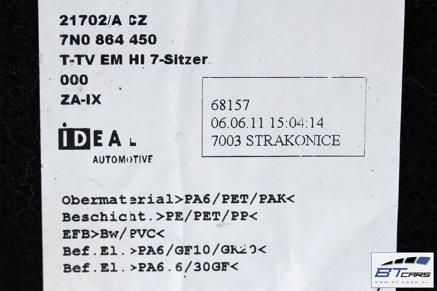 - 7n0 864 450/7n0864450 задний/задний передний пассажир 7n1 864 435/7n18644435. F/7n1863011f