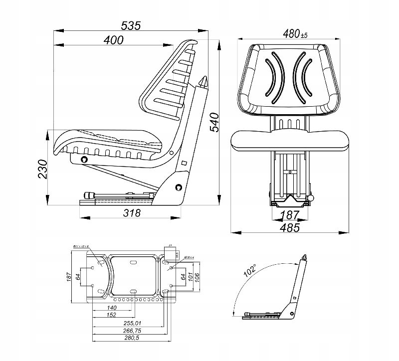 Двухместное подушное сиденье, ширина 48,5 см C-330, C-360 ST02-026