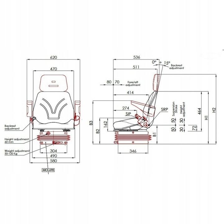 Сидіння з пневматичною підвіскою, ФУНКЦІЯ ПЛАВАННЯ, підлокітники та підголівник