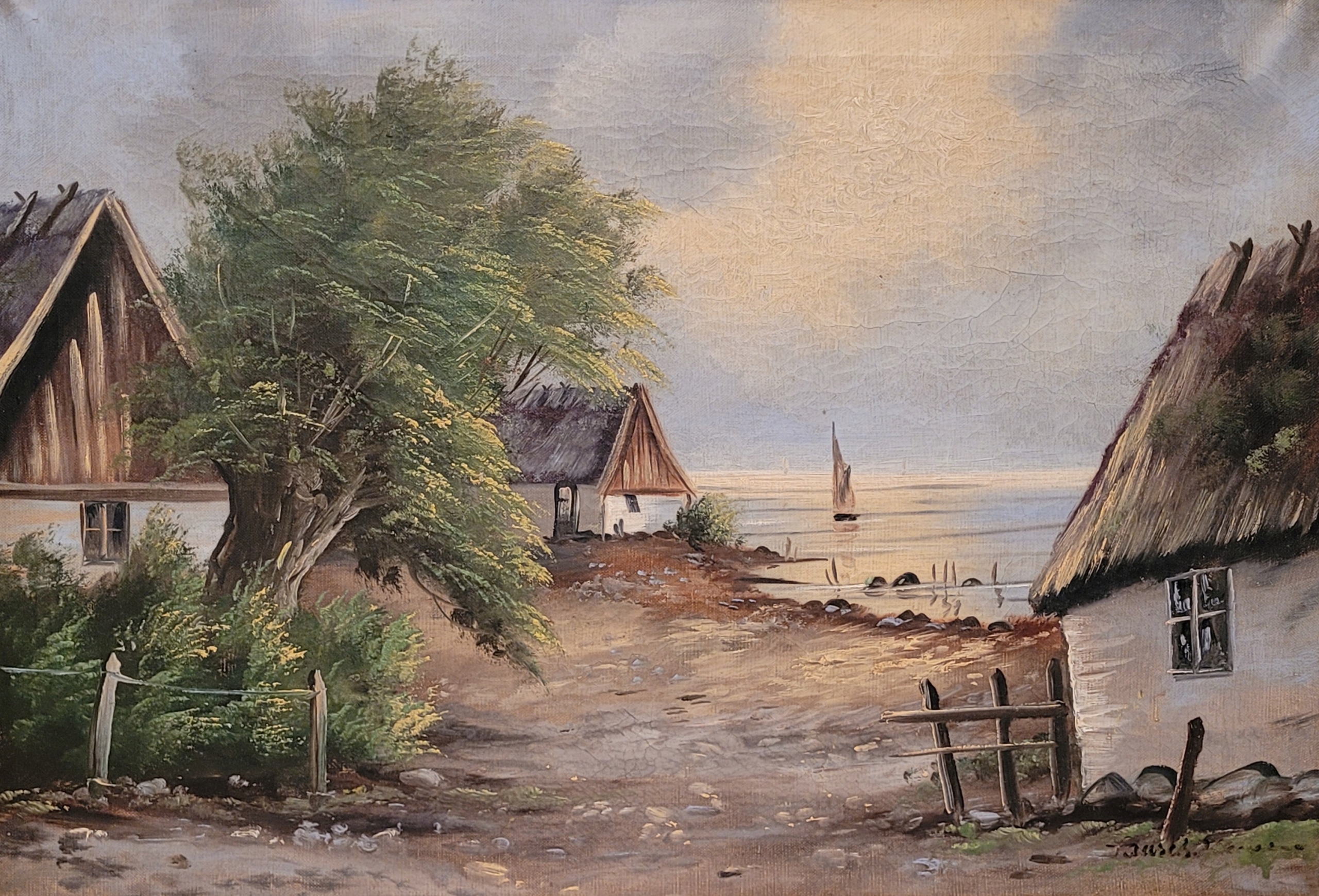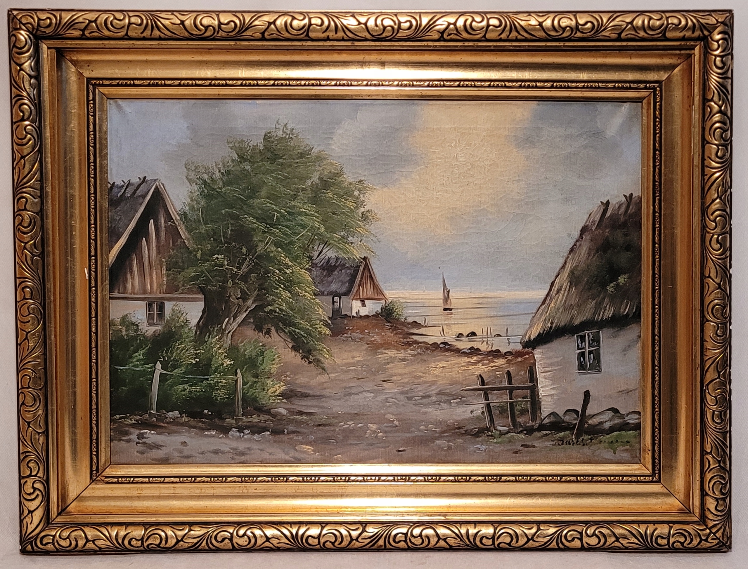 «Сиедлиско у приморья», старая, подписанная нефтяная картина.