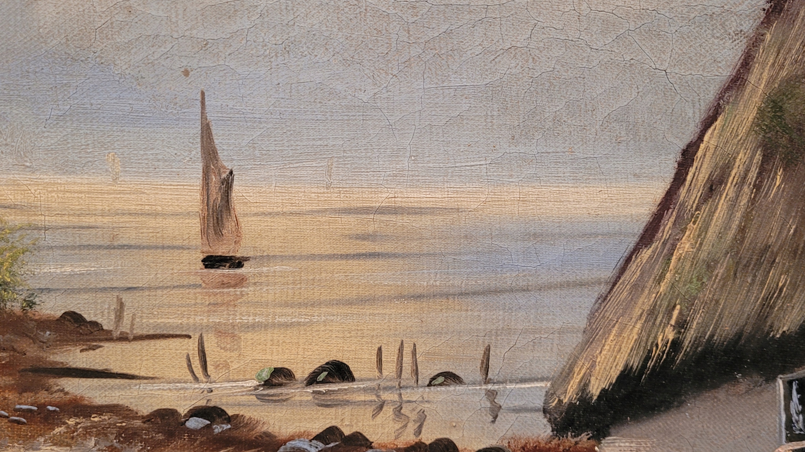 Объект продажи - красивая старая нефтяная картина «Среда обитания на море».