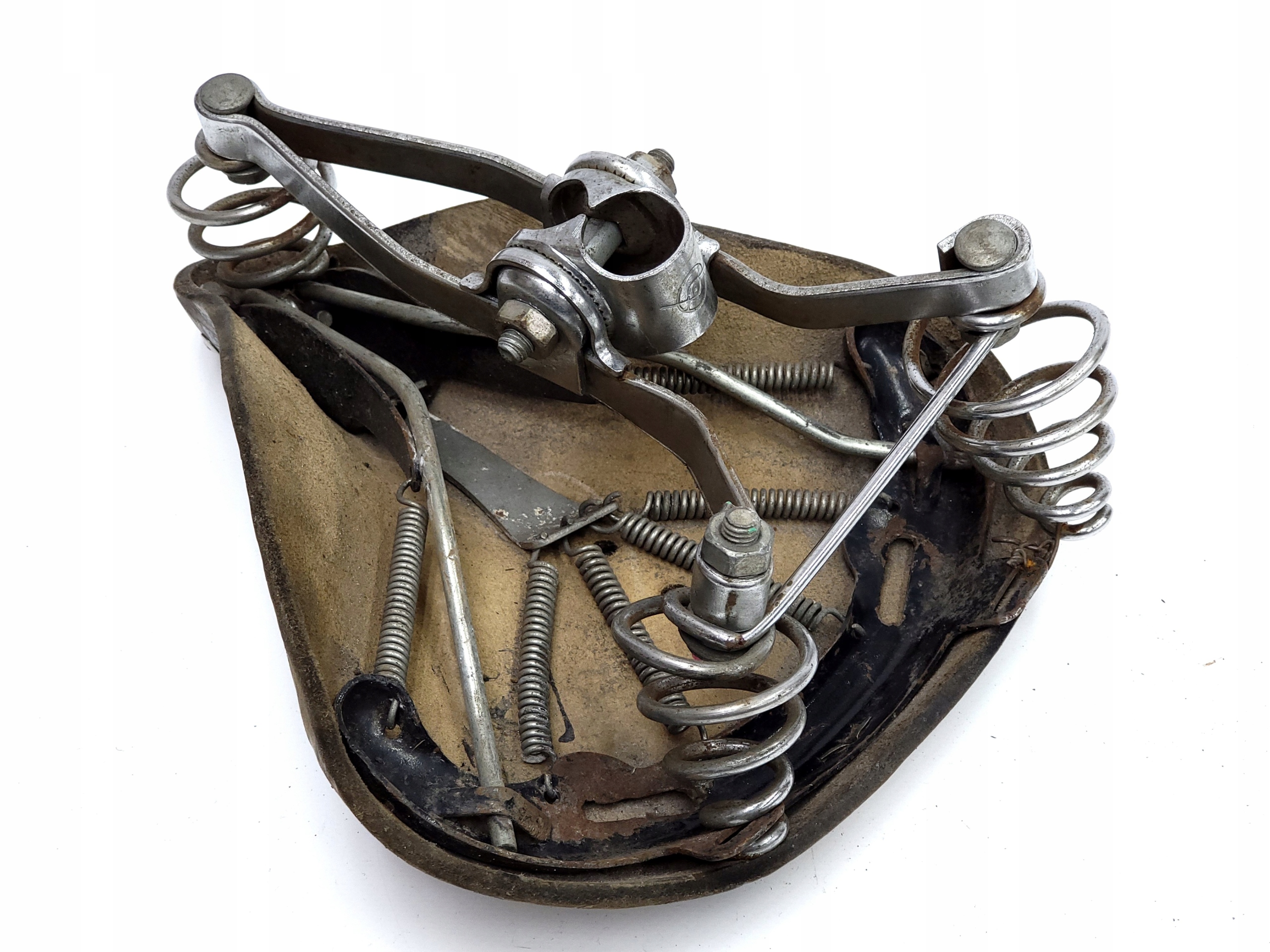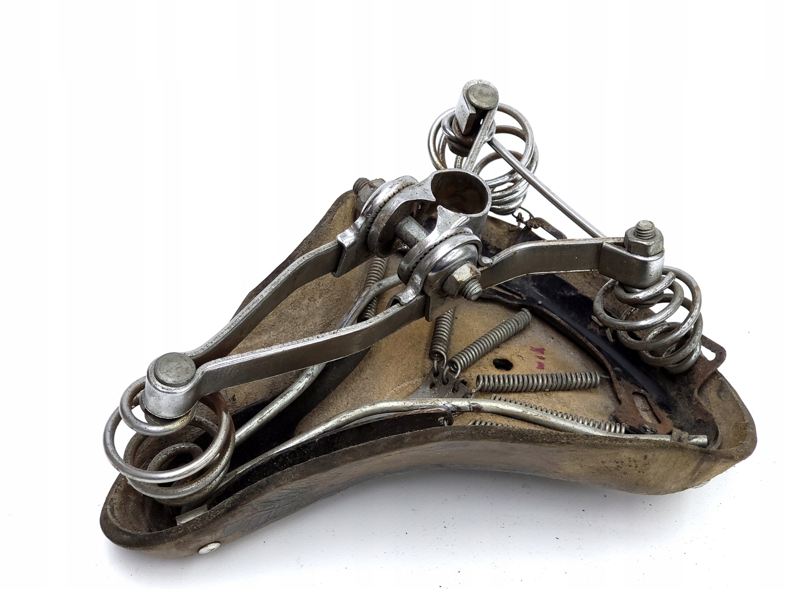 Мы предлагаем сиденье с седлой кожи на 3 пружинах для велосипедов от PRL. В задних пружинах не хватает прикрепления винтов, один из пружин поврежден.