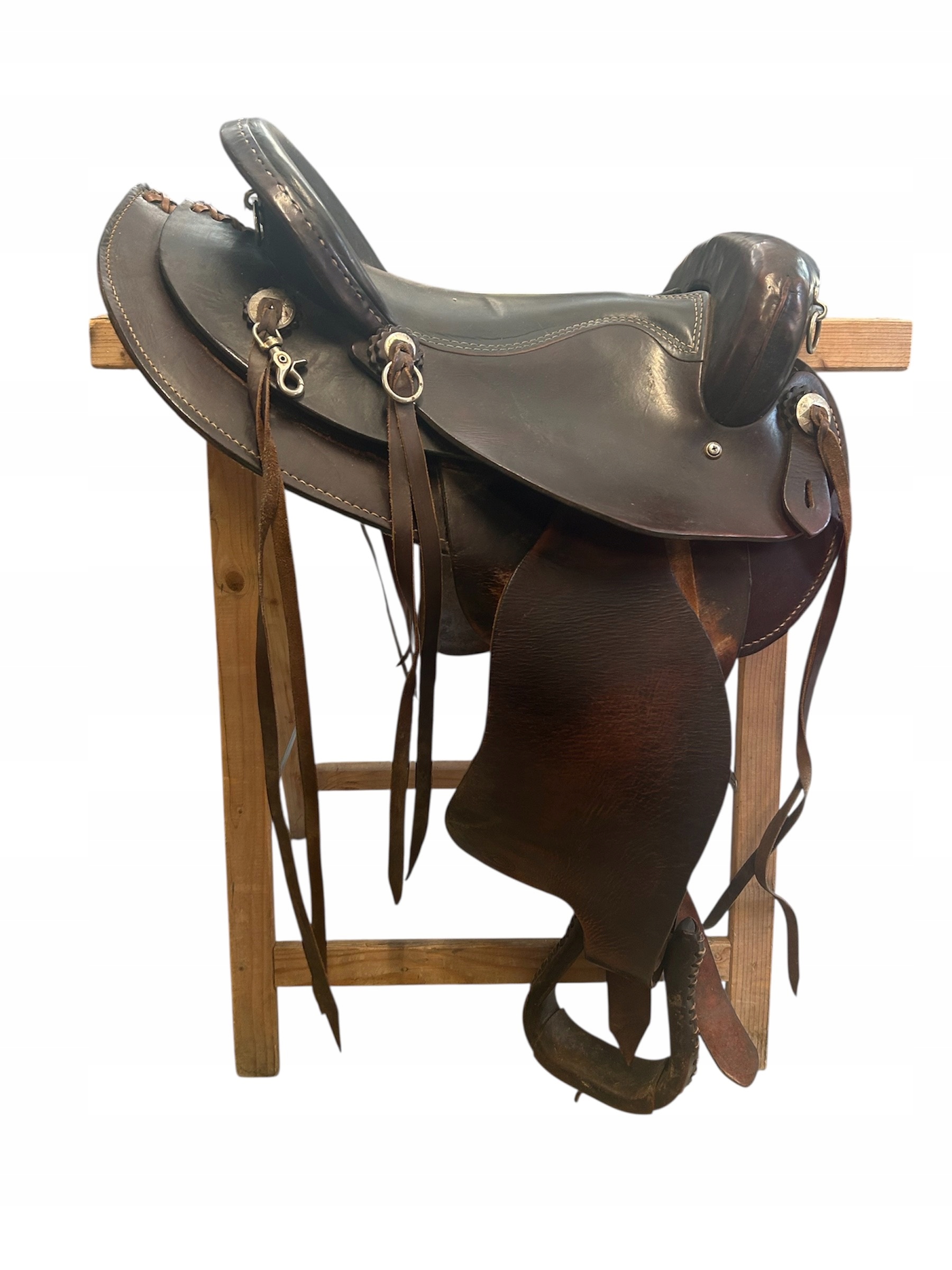 Оригинальное высококачественное седло в стиле вестерн от известного бренда Continental Saddlery Co., выполненное из натуральной толстой темно-коричневой кожи.