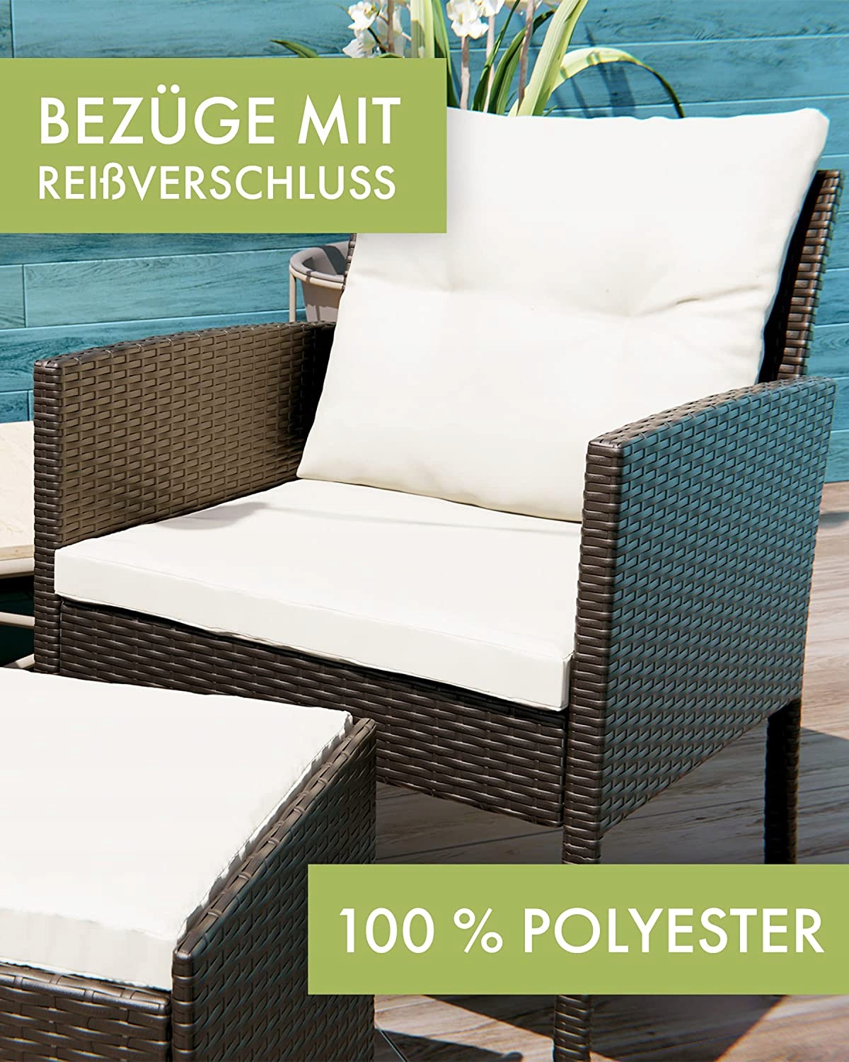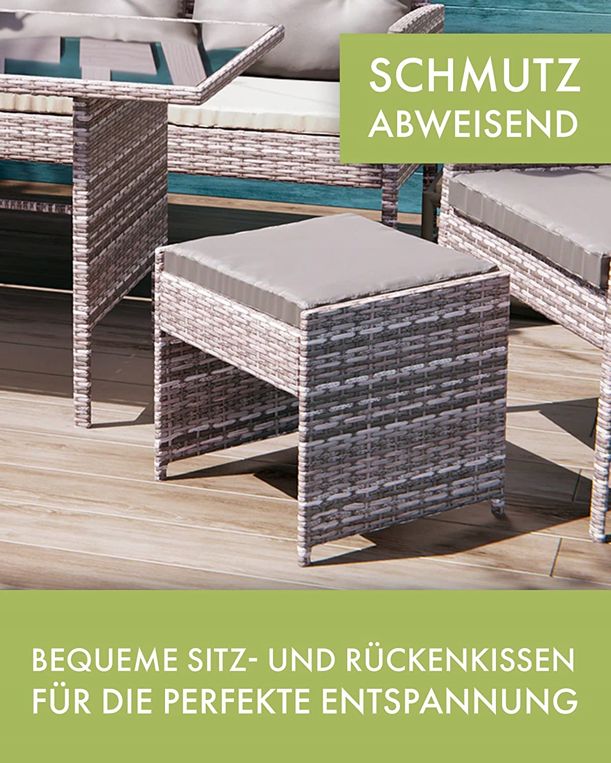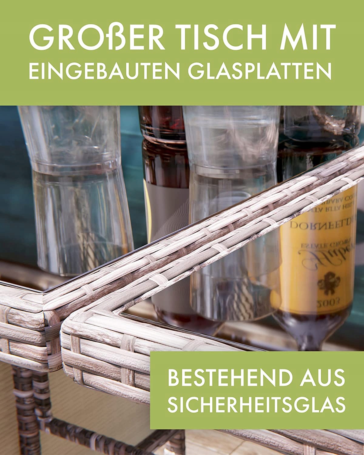 Этот эксклюзивный комплект для отдыха «Сидней» от Swing & Harmonie®, безусловно, притягивает взгляды. Комплект доступен в 3-х цветах и рассчитан на 7 человек.Сочетание узких полосок ротанга и матового каркаса придает мебели элегантный вид и невероятную долговечность. Высококачественное волокно полиратанга вручную сплетено вокруг каркаса с порошковым покрытием опытными ткачами. Полиротанг исключительно устойчив к погодным условиям, прост в уходе и устойчив к высоким температурам, морозу, хлору и соленой воде. В отличие от обычного ротанга, полиротанг не распадается на мелкие кусочки, устойчив к УФ-излучению и чрезвычайно гибок. Прочный каркас полностью покрыт порошковой краской. Порошковая покраска не только красиво выглядит, но и защищает металл от внешних погодных условий. В отличие от обычной окрашенной рамы, порошковое покрытие абсолютно устойчиво к царапинам и ржавчине. Большие черные стеклянные пластины обеспечат безопасное размещение стаканов и посуды. Пластины из безопасного стекла полностью тонированы и, следовательно, непрозрачны, что обеспечивает красивые отражения на поверхности стола. В комплект входят удобные подушки сиденья и спинки толщиной 6 см. Чехлы изготовлены из 100% полиэстера и устойчивы к воде и грязи. Благодаря вшитым молниям чехлы при необходимости можно легко снять и постирать.