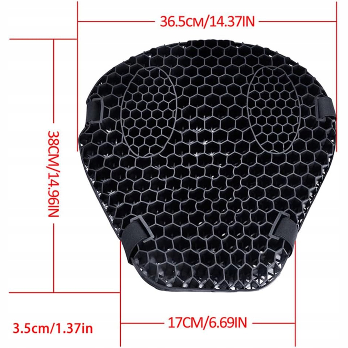 Крышка сиденья на мотоцикле была разработана в форме 3D -соты, благодаря которой воздух может циркулировать быстрее, чем в случае с подушками губки. Это помогает эффективно охлаждать и отвлекать тепло, поэтому вы можете защитить себя от пота и горячего. Размеры подушки сиденья мотоцикла составляют около 36,5 х 38 х 3,5 см.