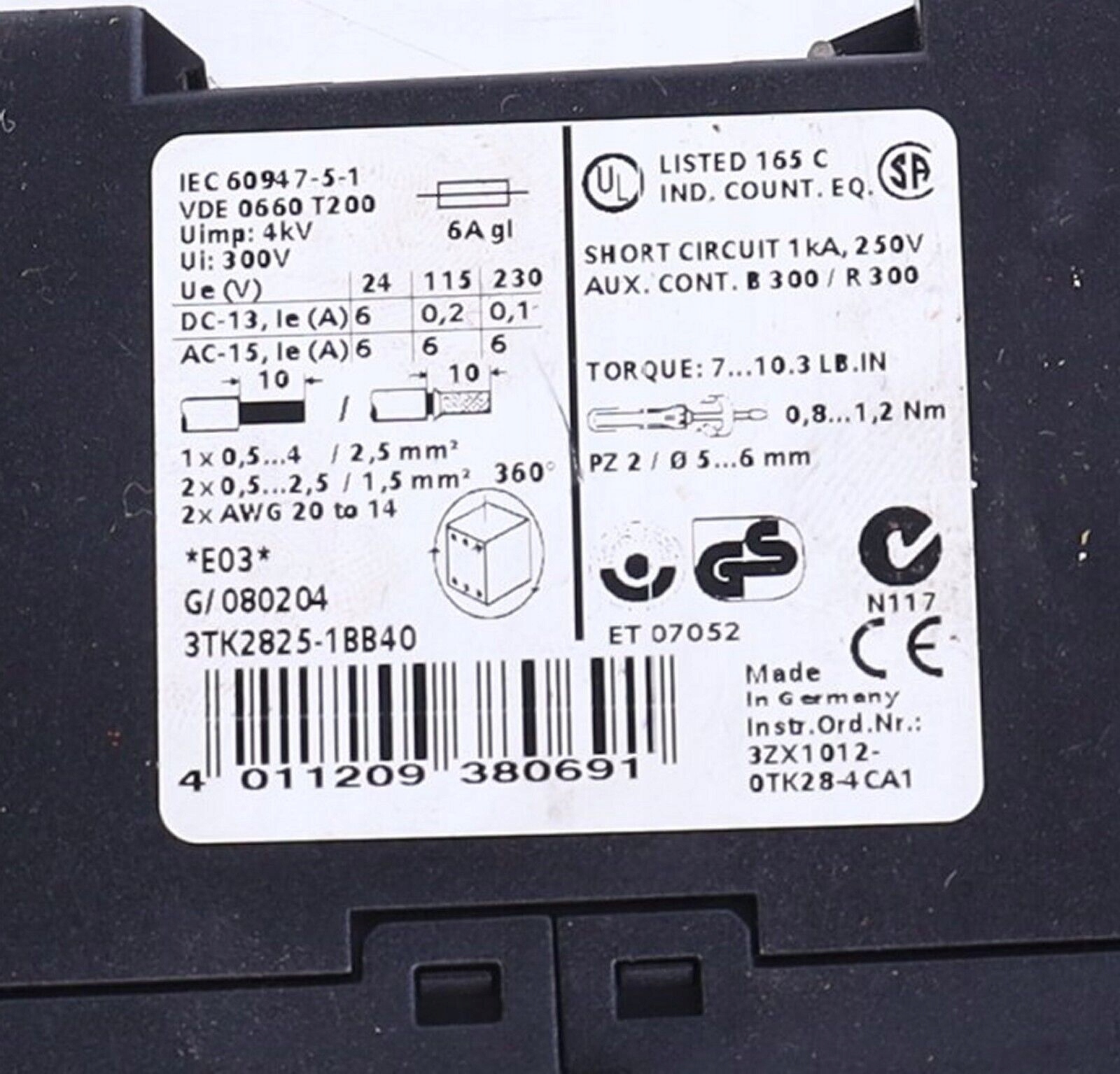 SIEMENS 3TK2825-1BB40 ПОШКОДЖЕНИЙ КОРПУС