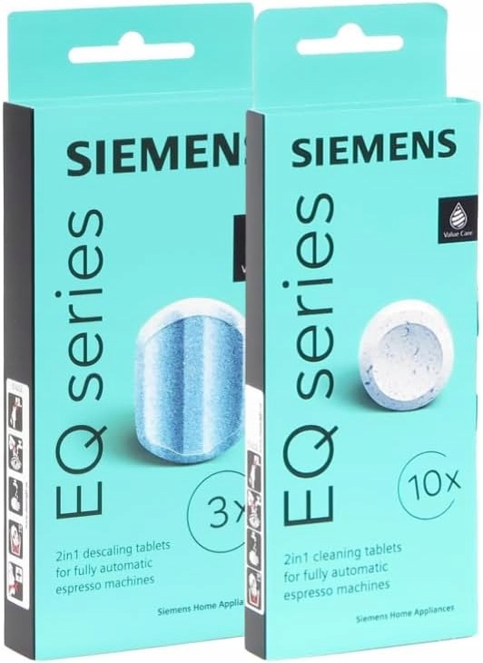 Информация об этом продукте. Оригинальные аксессуары производителя Siemens в промо -пакете подходят для всех Siemens Eq.9, уравнение 8, уравнение 7, уравнение 6, уравнение 5 и полностью автоматические строительные машины, оптимизированные для автоматической программы Calcnclean, полностью автоматические кофеарки