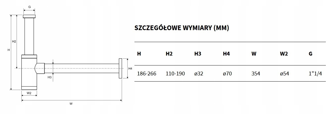 - регулируемая труба Φ 32 мм, максимальная длина до 327 мм