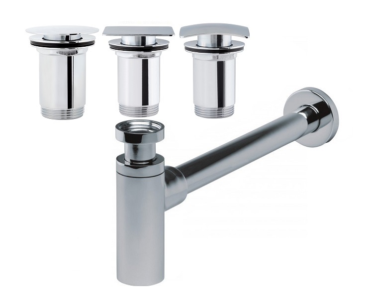 полусифон для умывальника + пробка «клик-клак», изготовлен из высококачественной латуни и покрыт хромовым покрытием