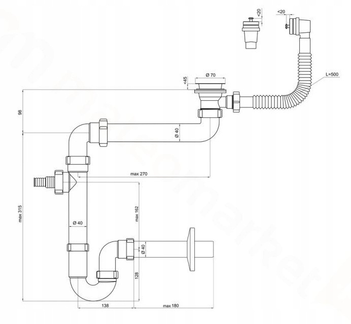 Сифон для 50-мм раковины 1 камер, спасая место