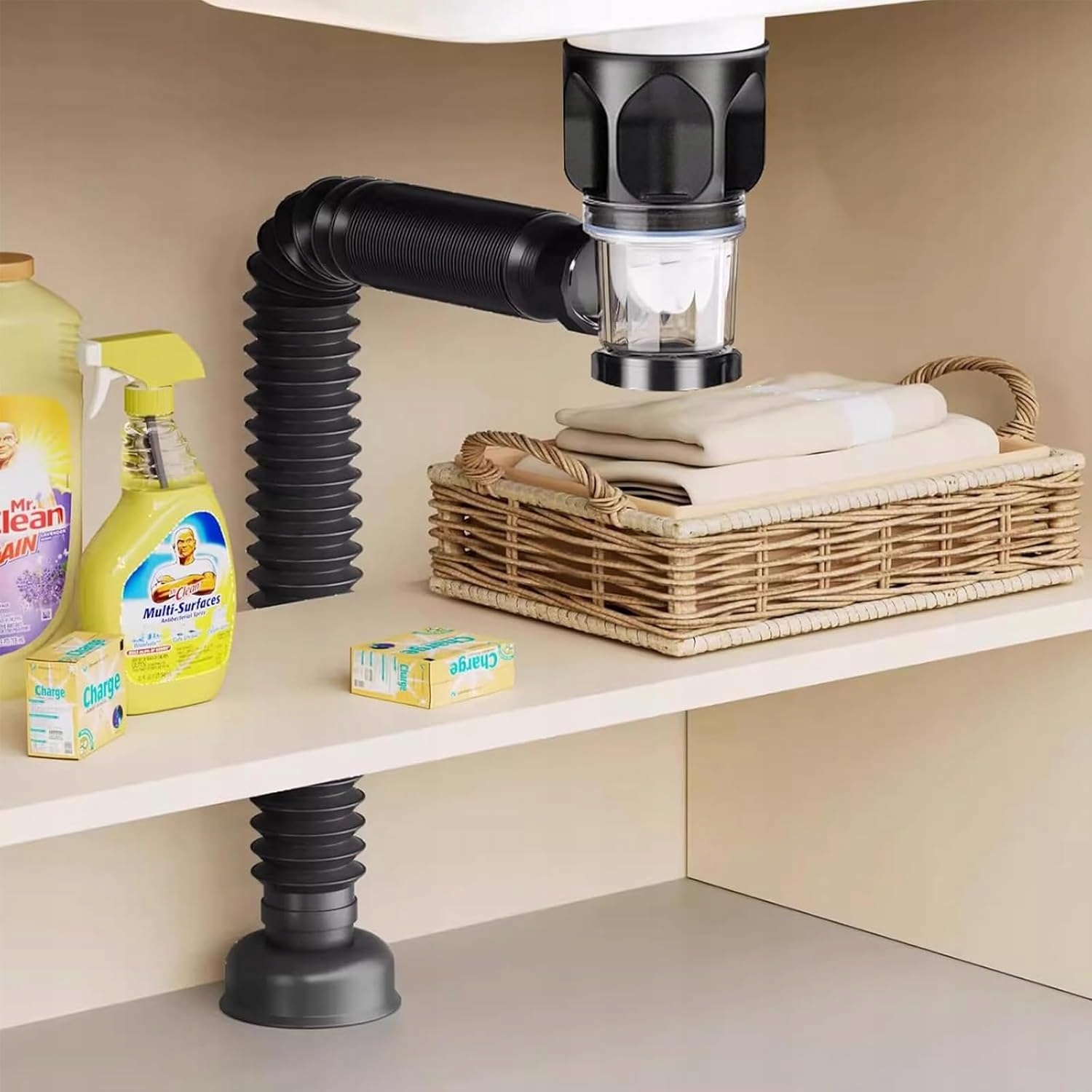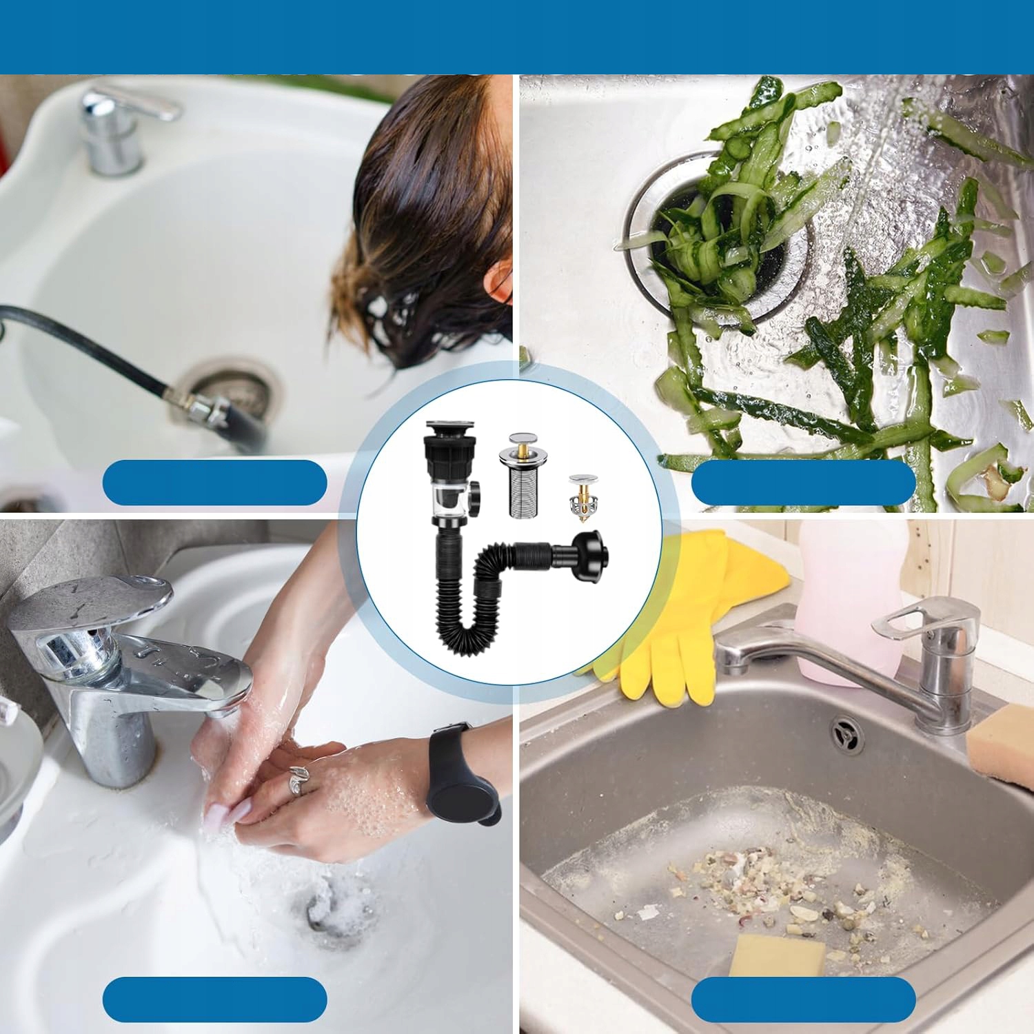 💧💧[Стойкость к запаху]:Комплект состоит из трубного сифона и сливного комплекта с переливом. и видимый запах автоматически закрывается при отсутствии дренажа, что блокирует запах.