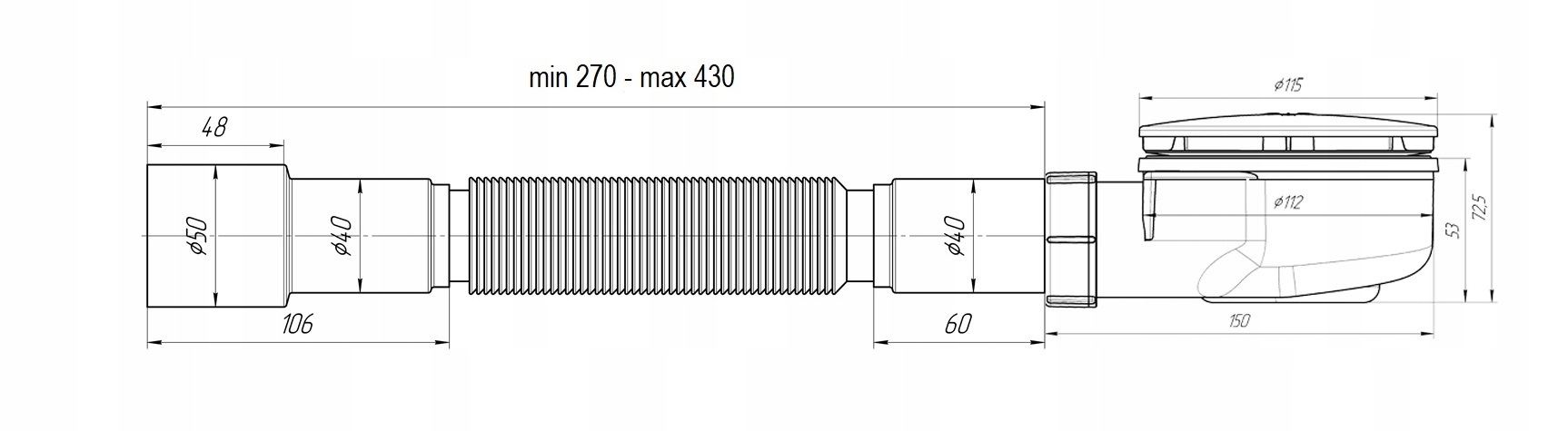- Сливная трубка длиной от 270 мм до 430 мм.