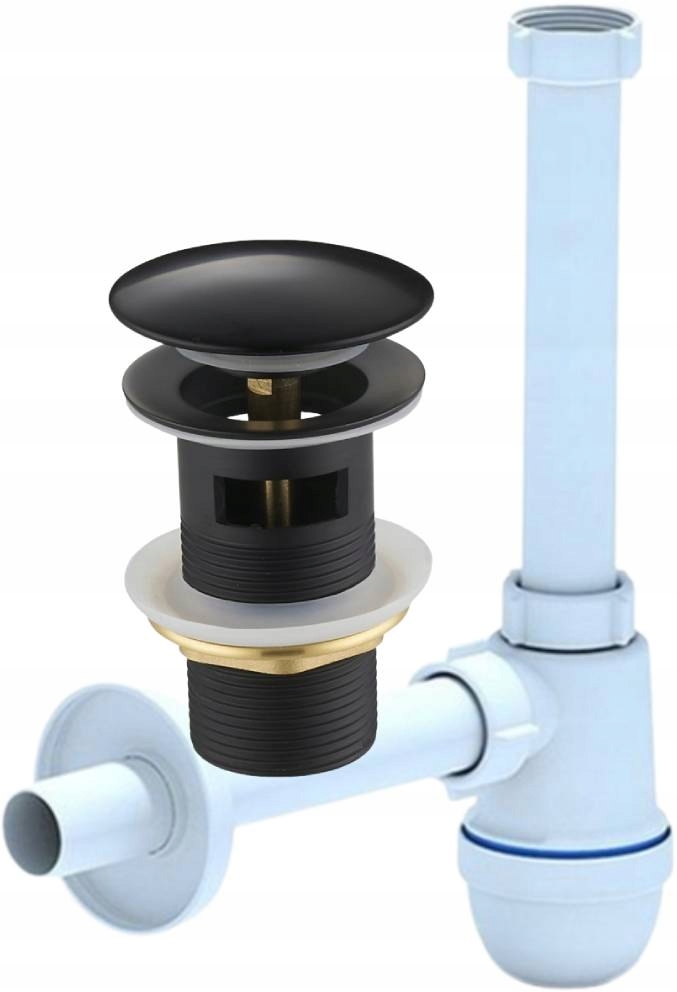 Сифон на умивальник + пробка клік-клак чорна SOLID