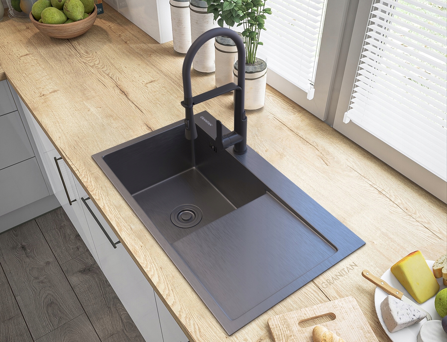 СИФОН РУЧНИЙ до мийки BLACK STEEL, 1 чаша
