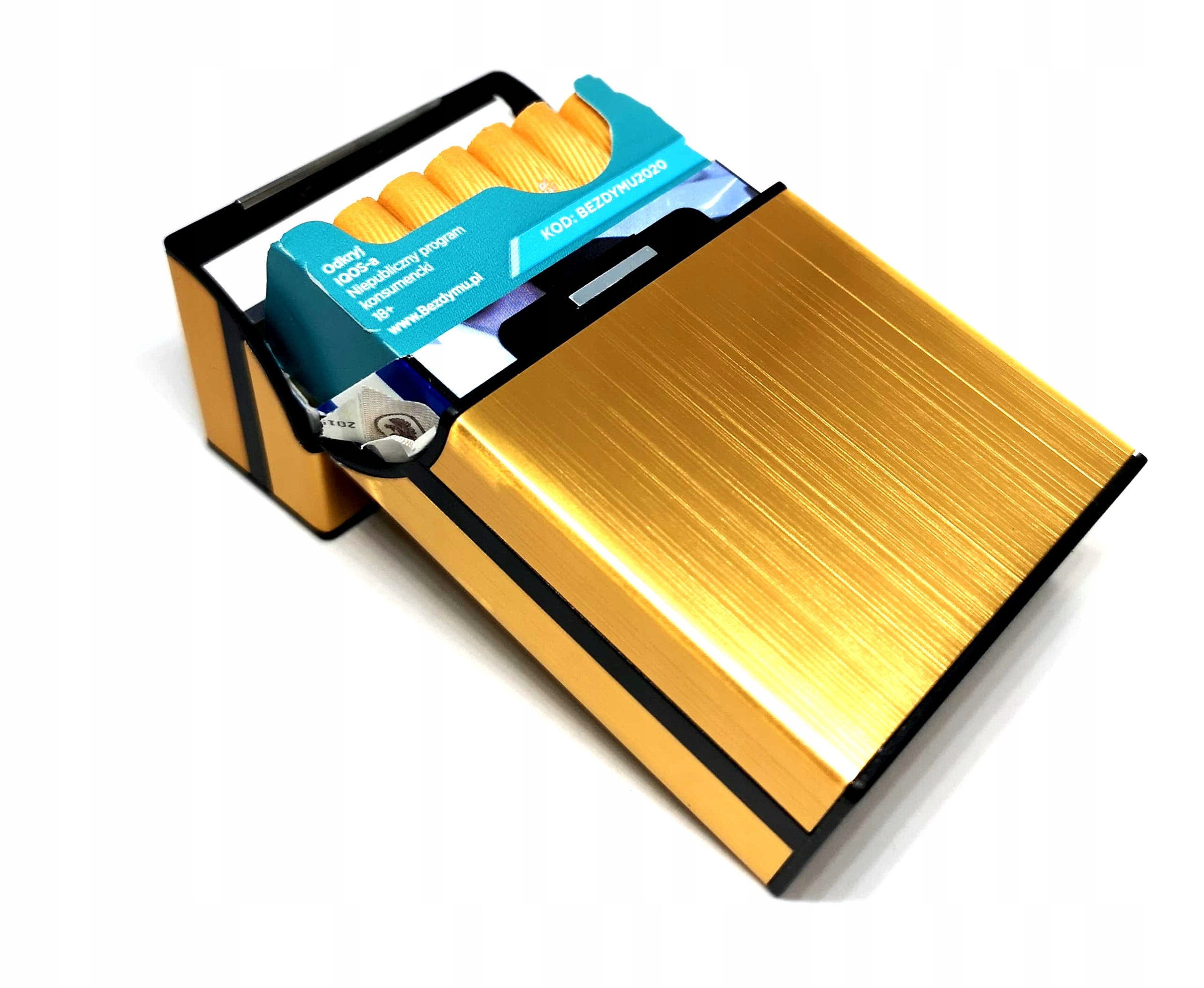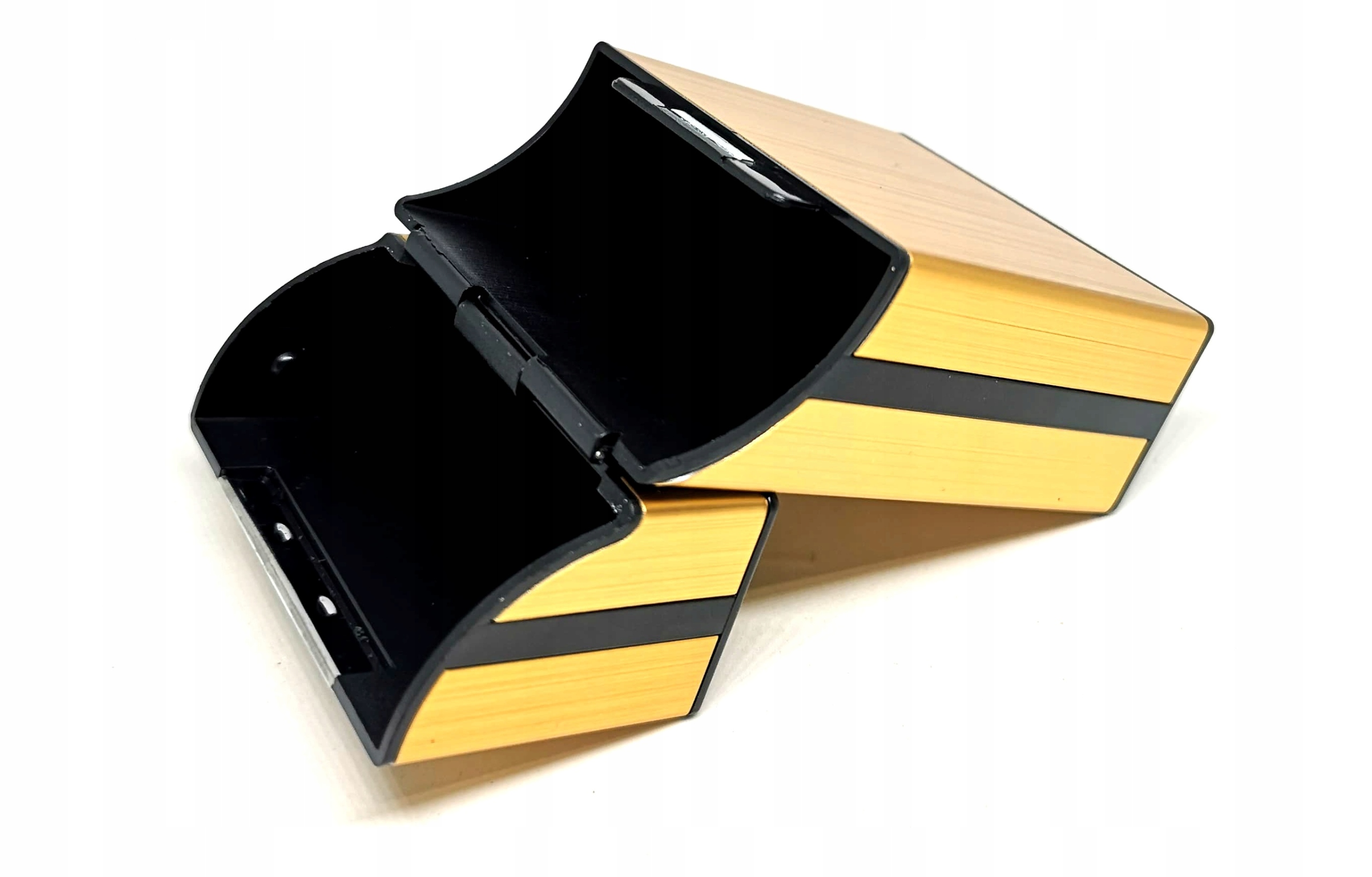 - Положив всю пачку и упаковку внутрь, верхняя крышка футляра откроется вместе с верхней частью упаковки.