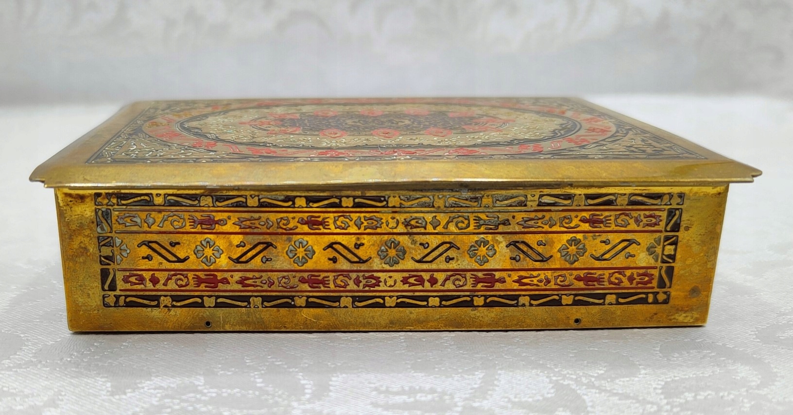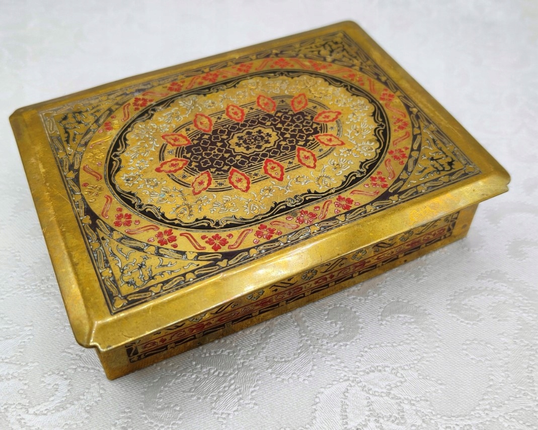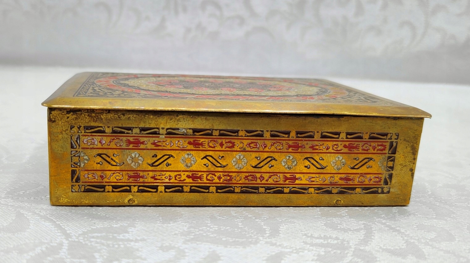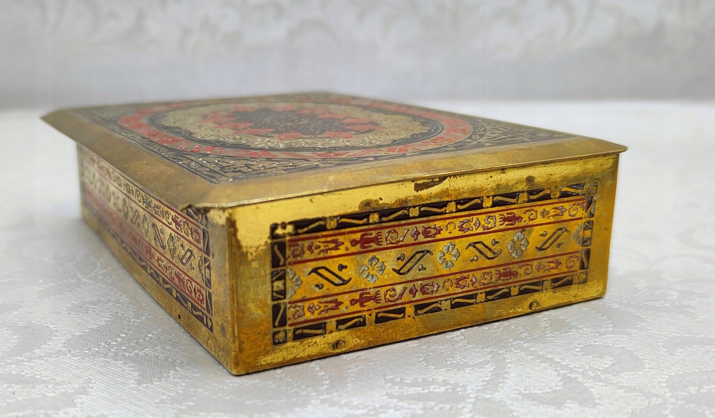 - Измерения внутри: 11,5 см/7,5 см/2,5 см. Фотографии, не отремонтированные, металл из -за возраста прекрасно окисляется, а в местах меняется цвет, видимый рейд/склон.