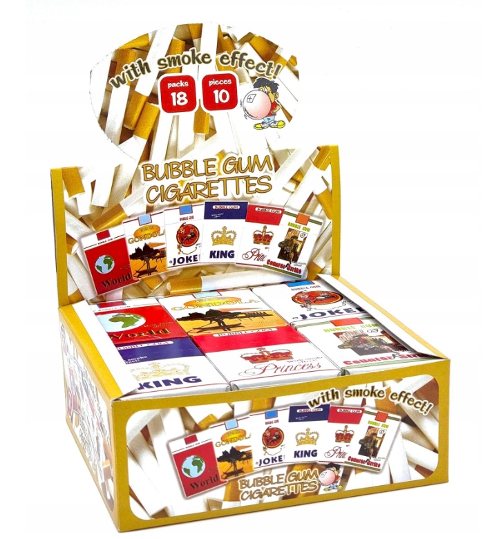 ✅ Жевательная резинка в форме сигарет b > с эффектом пузырьков.