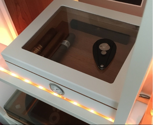 Хьюмидор изготовлен из уникальных материалов и дополнительно имеет стеклянную пластину, позолоченные квадратные петли и цифровой гигрометр из металл, увлажнитель воздуха из нержавеющей стали и съемная перегородка из кедра. Дополнительно в комплект входит инструкция на нескольких языках, которая поможет вам пользоваться хьюмидором.