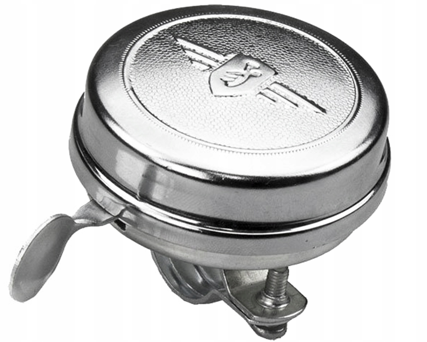 Классический Verso Bicycle Bell из хромированной стали с тиснением. Колокол издает очень четкий и громкий звук. Колокола сборка очень проста. Подходит много диаметров рулевого колеса.