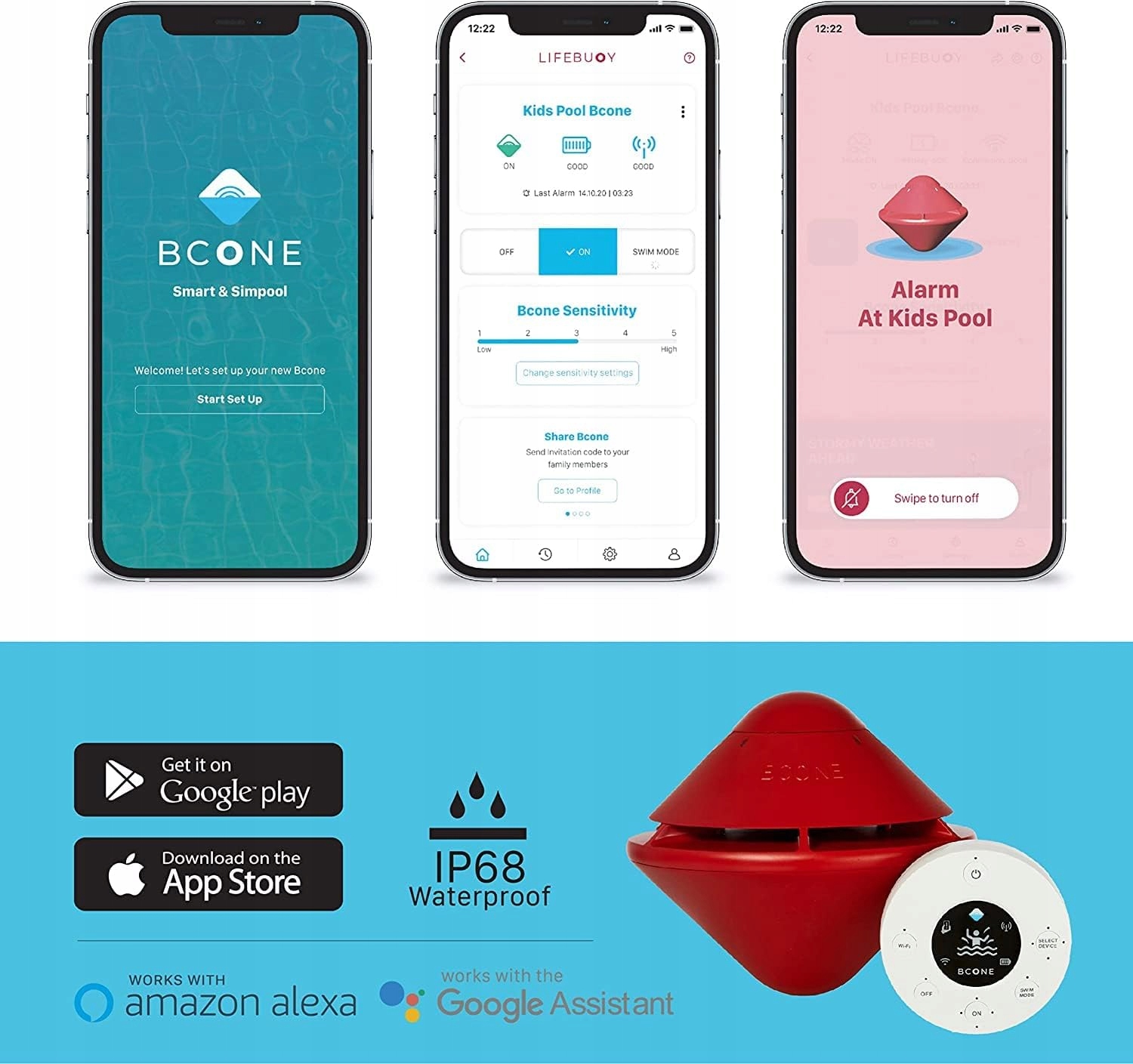 BCone Интеллектуальная система сигнализации для плавучего бассейна, совместимая с Alexa и Google Assistant, подключение к Wi-Fi, управление приложениями из любого места. Очень громкий сигнал тревоги как у бассейна, так и у дома
