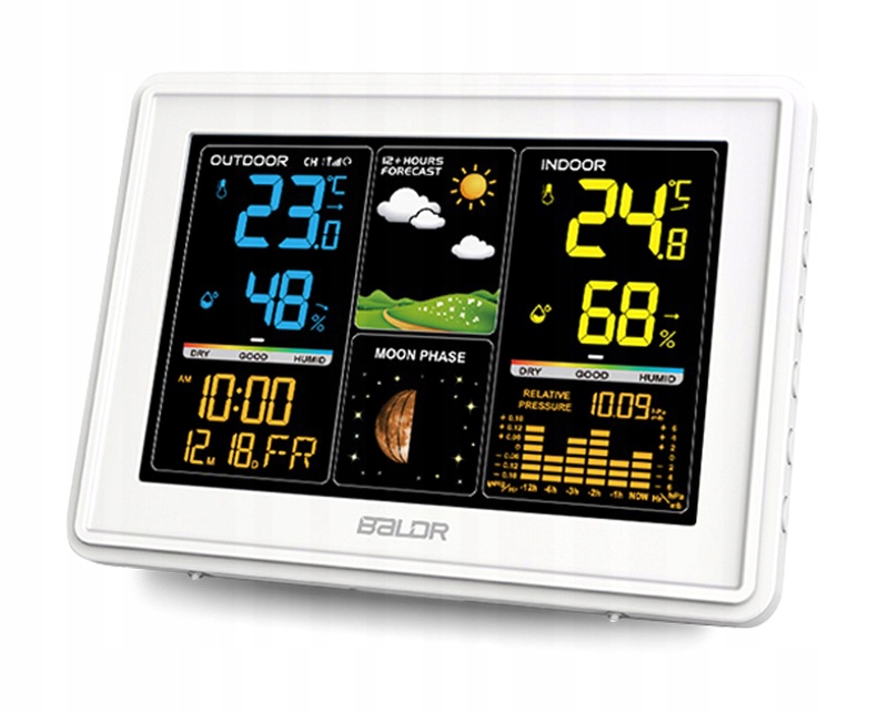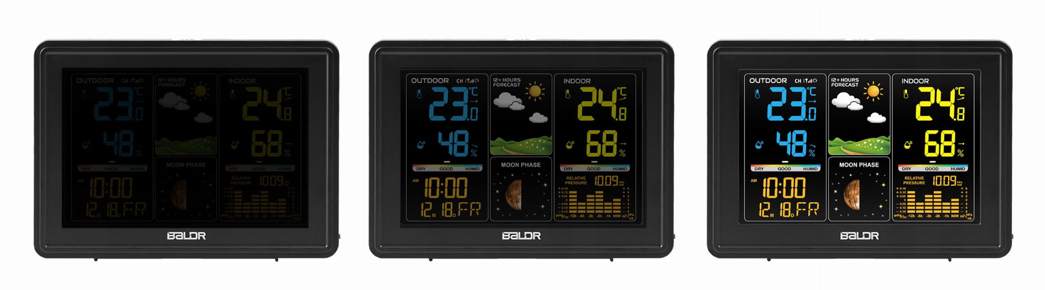Комнатная метеостанция Baldr B359-V2 оснащена большим, четким цветным ЖК-дисплеем с крупными цифрами. Дисплей с черным фоном демонстрирует минималистичный и современный дизайн беспроводной домашней метеостанции Baldr B359-V2, поэтому она вписывается в любой интерьер.