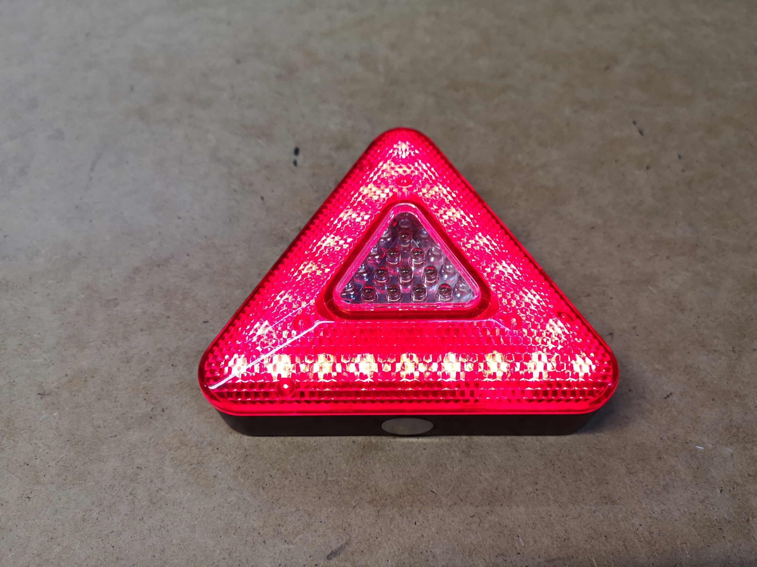 Треугольник может использоваться как источник оповещения, сигнализации и аварийного освещения. Он имеет 39 светодиодов повышенной яркости, из них 24 красных используются в качестве сигнального элемента треугольника и еще 15 белых в качестве фонарика.