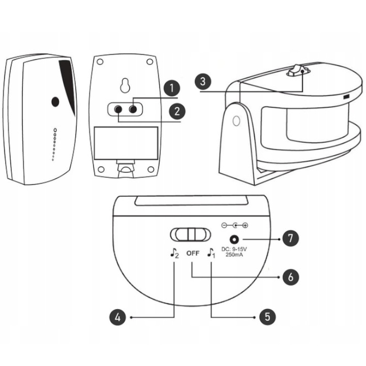 ⭐ Комплект используется для оповещения о появлении человека в заданном помещении (например, ВХОД В МАГАЗИН) или появление нежелательных людей в защищенных местах.