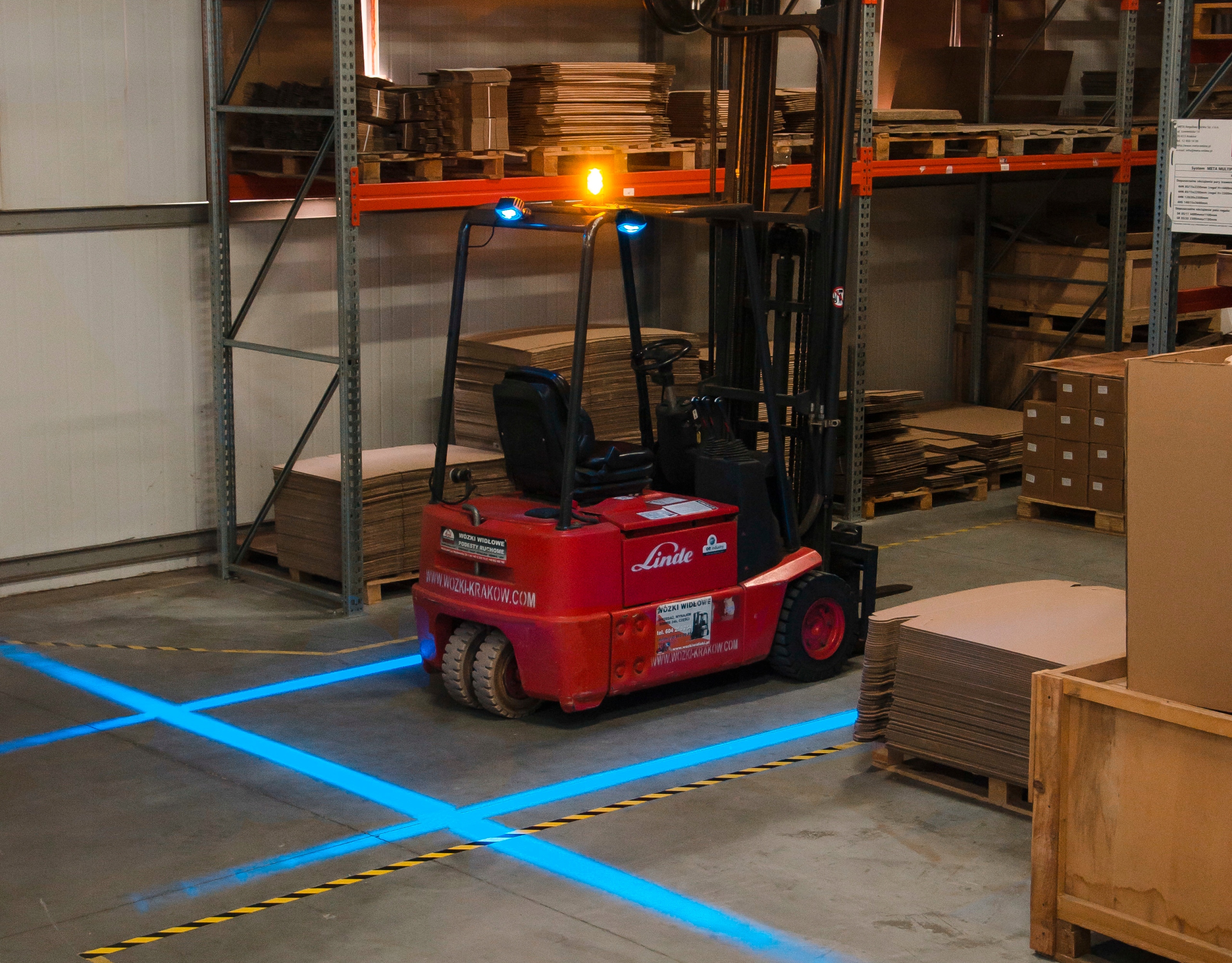 Blue Linear создает синюю зону безопасности вокруг погрузчика, предупреждая о приближающихся транспортных средствах. Светильник является очень хорошей альтернативой звуковым предупредительным сигналам, особенно на складах и в цехах, где много шума.