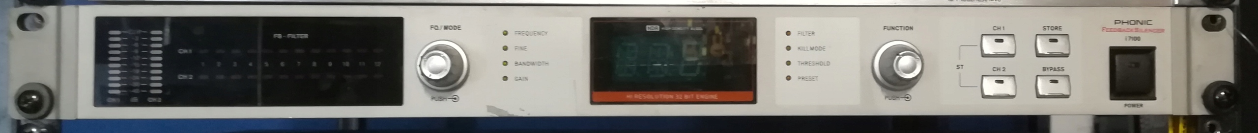 Профессиональное устройство для устранения частот, вызывающих электроакустическую обратную связь.