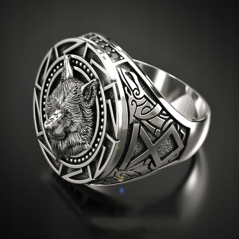 СИГНАЛЬНИЙ СРІБНИЙ КОЛЬЦЕЛЬ З ГОЛОВою НОНДИЧНОГО ВОВКА