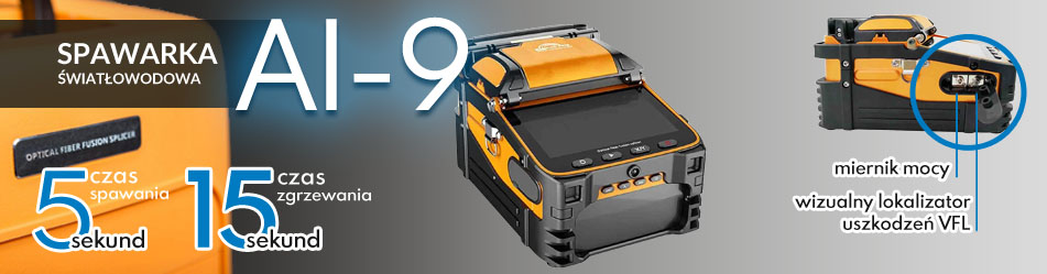 Сварщик использует прием позиционирования волокон к сердцевине (возможность позиционирования к сердцевине). кожух), обеспечивающий наилучшие параметры затухания выполняемых сварных швов. Волокна устанавливаются с помощью 6 высококлассных двигателей Siemens. АИ-9 идеально подходит для реализации 100 км оптоволоконных шин, установок FTTH, а также коротких соединений «точка-точка», установок локальной сети или видеонаблюдения на основе оптоволоконных кабелей.