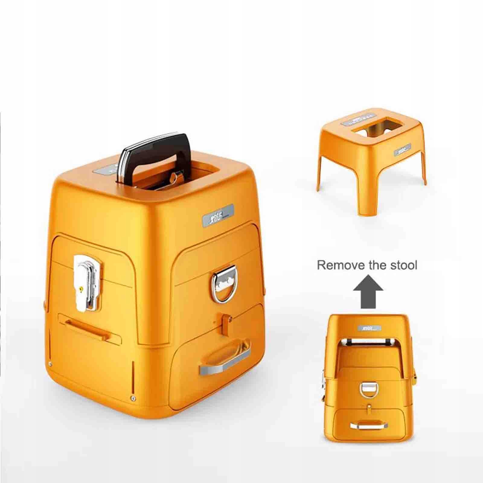 Важной особенностью аппарата является то, что для сварки нет необходимости вынимать сварочный аппарат из коробки. Ящик изготовлен из прочного материала и имеет съемный элемент, который можно использовать как табуретку или небольшой столик.