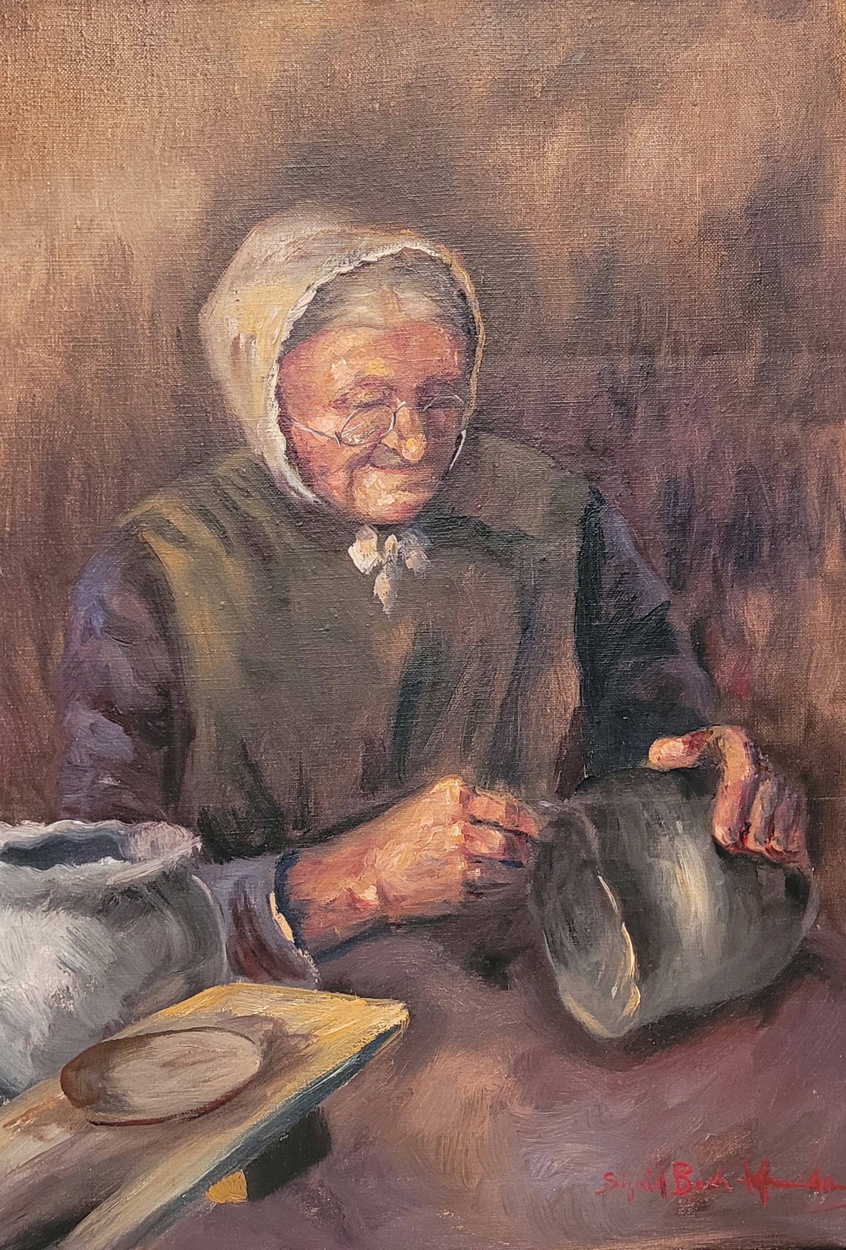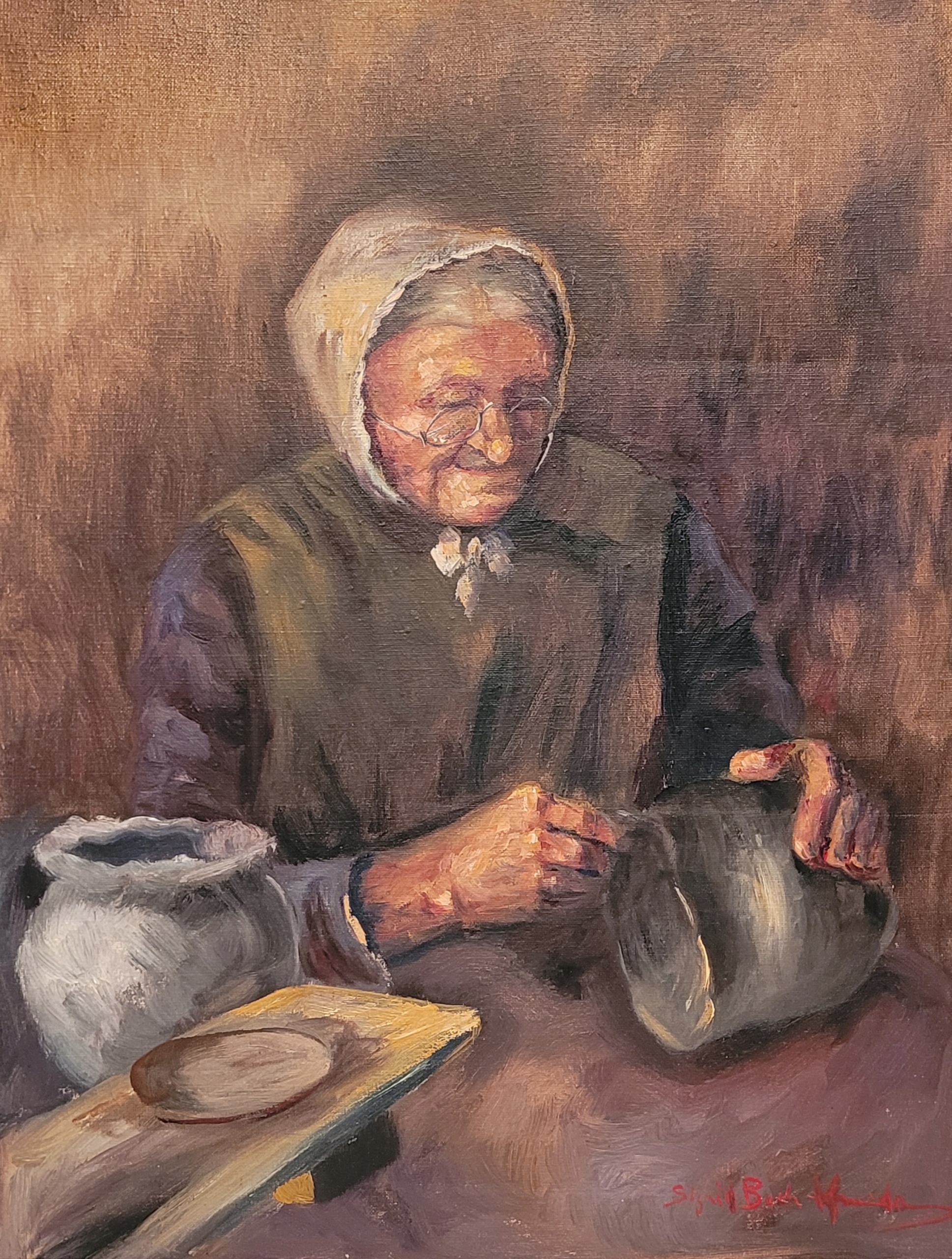 СИГРИД БЕХ КУДСЕН (1864 -1948) - «ПОРТРЕТ СТАРУШКИ», старая картина маслом.
