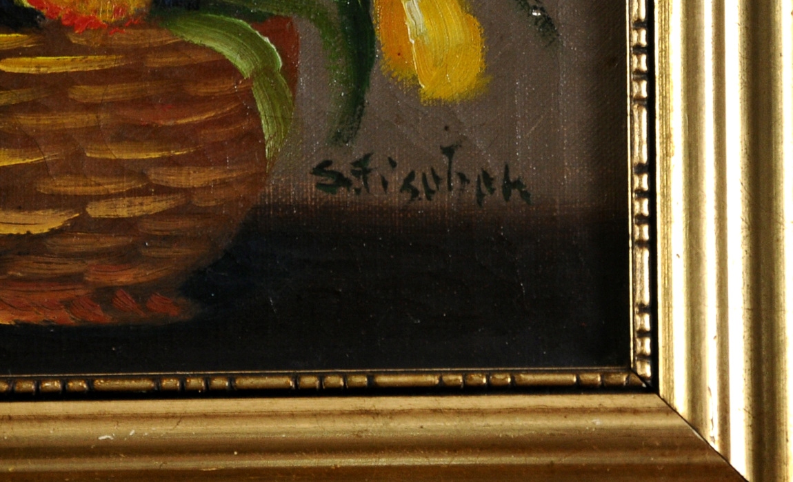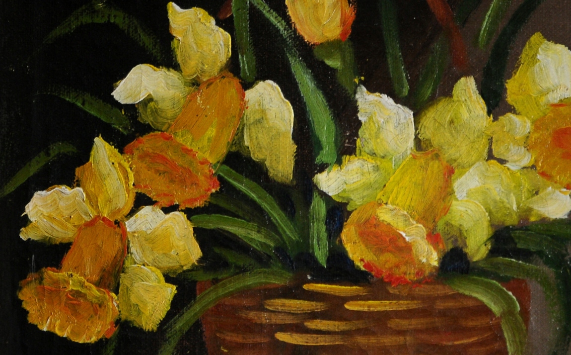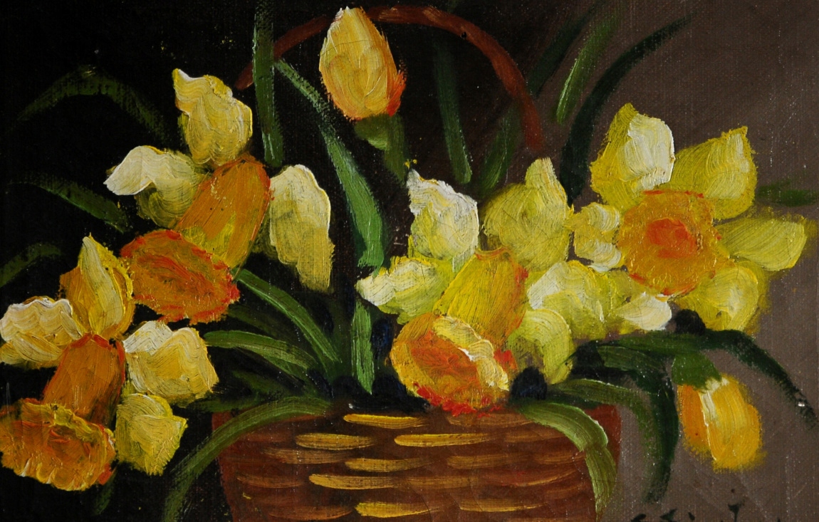 Сигрид Фишер "Daffleus в корзине" Красивая старая масляная картина !!!