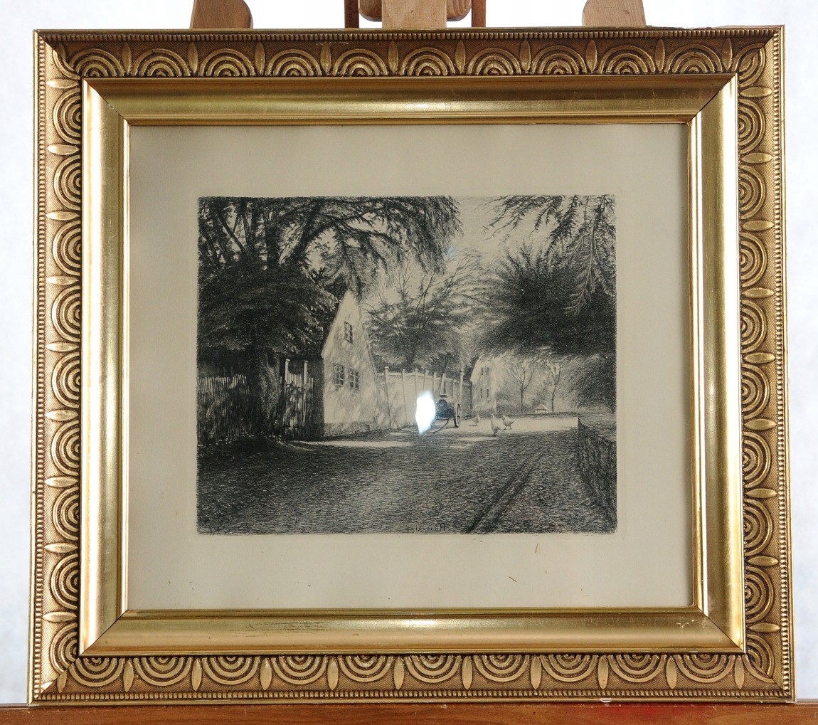 СИГВАРД Х. «СЕЛЬСКИЙ ПЕЙЗАЖ» КРАСИВАЯ СТАРИННАЯ КАРТИНА ЗА СТЕКЛОМ - ГРАВИРОВКА!!!