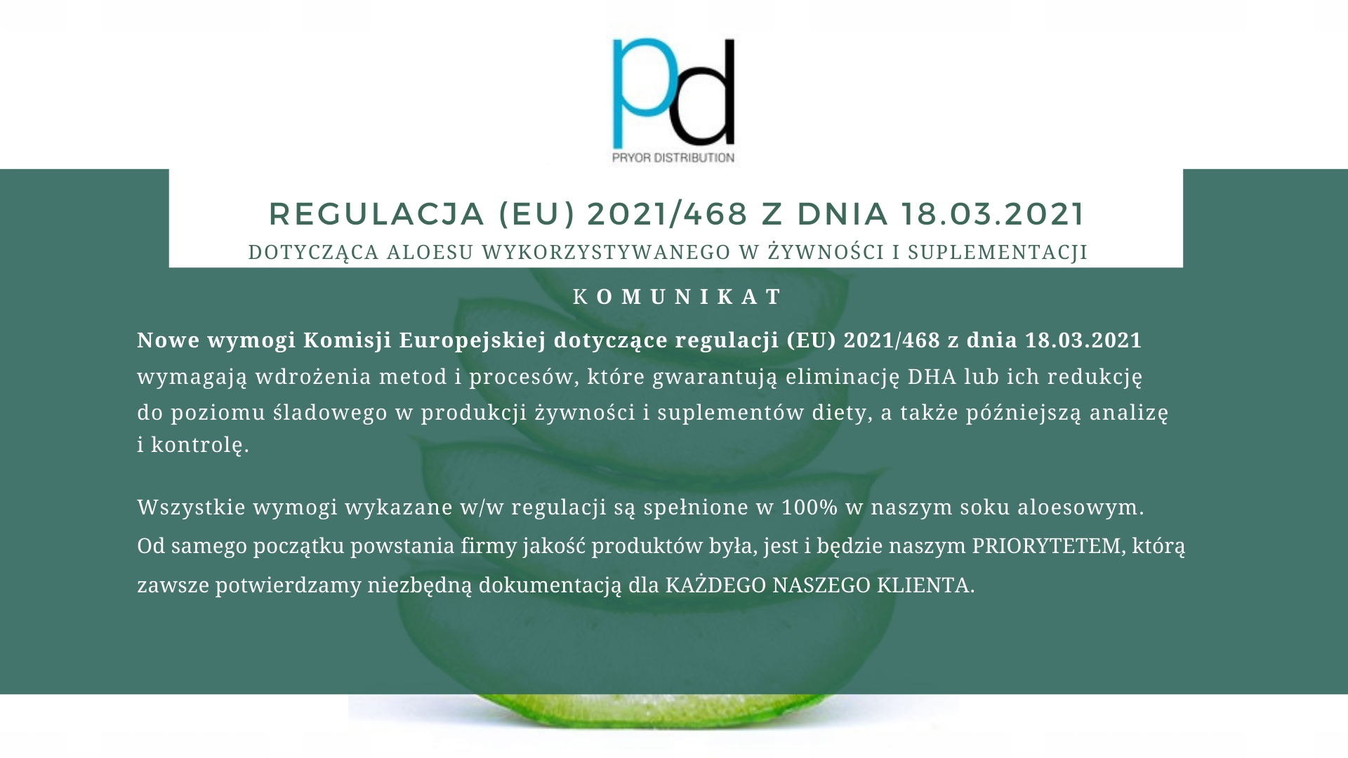 В соответствии с Директивой Европейского Союза ЕС 2021/468, в котором говорится 18.03.2021, наш сок соответствует всем условиям, чтобы оно разрешено потреблять в Европейском союзе. Проверьте каждого продавца перед покупкой, есть ли у него соответствующие сертификаты и анализ, чтобы вы могли безопасно употреблять сок алоэ для его целей. Помните- Aloe Juice является сенсационным для нашего тела, если он поступает из официального источника!