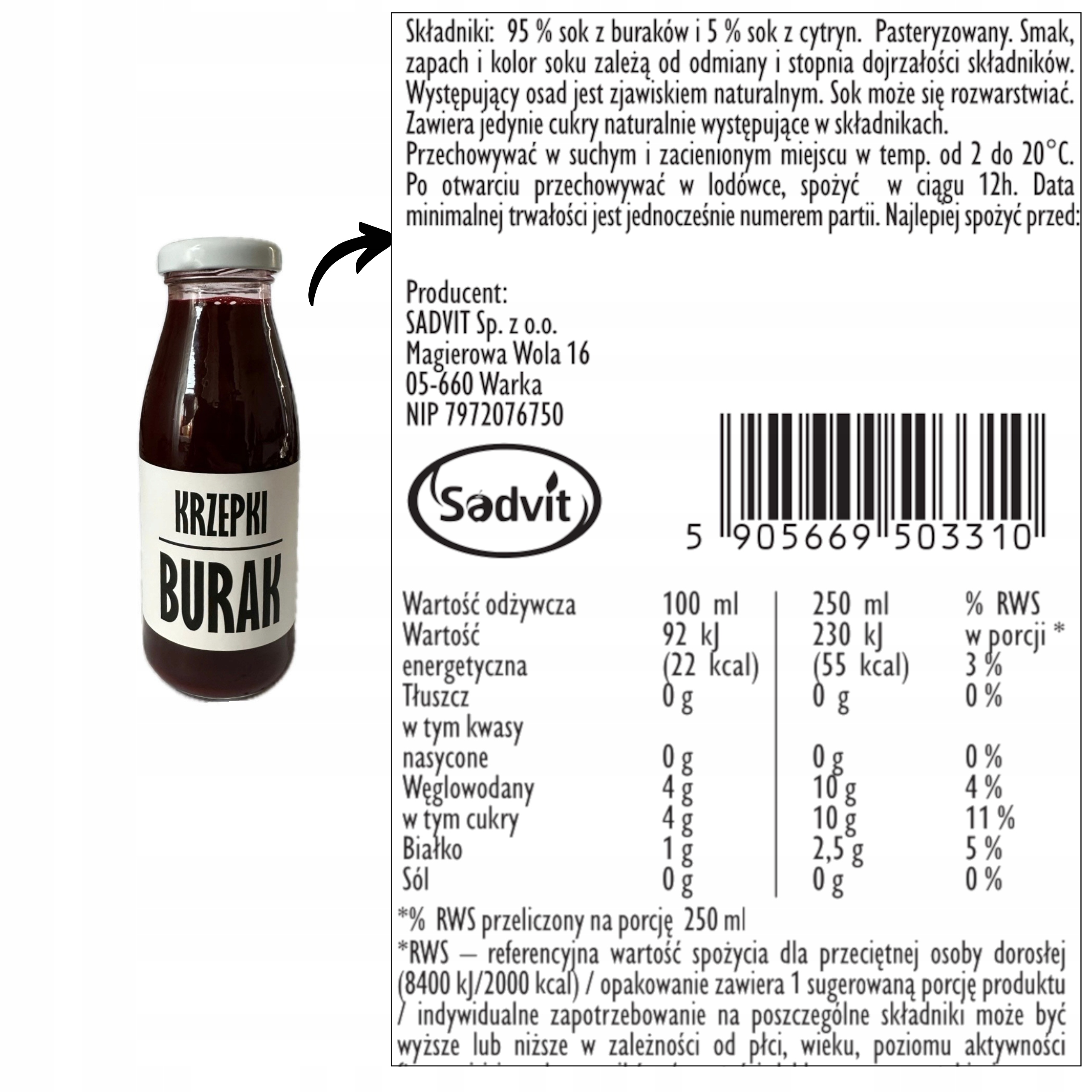 Сок холодного отжима из свеклы 95% и лимона 5%. Пастеризовано.