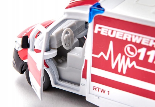 Машина скорой помощи с множеством функций. Включена сирена и синий свет: спасатели спешат к следующей экстренной машине на машине скорой помощи Mercedes-Benz Sprinter Miesen type C. В машине скорой помощи также находится врач скорой помощи. Каждая минута имеет значение. На носилках и доске людей заносят в машину для оказания первой помощи. Боковые двери Мизена и съемная крыша открывают вид на отделение интенсивной терапии на четырех колесах. Дополнительно можно открыть двери в кабине водителя. Вы можете свободно комбинировать набор с другими игрушками серии SIKU World. Приглашаем вас в мир SIKU! Модели автомобилей SIKU идеально подходят как автолюбителям, так и неавтолюбителям. Автомобили проверенного качества изготовлены из металла с добавлением пластиковых элементов, с вниманием к мельчайшим деталям, что делает их похожими на настоящие автомобили. В коллекцию входят модели транспортных средств всех типов: легковых автомобилей, гоночных автомобилей, грузовиков, машин скорой помощи и строительной техники. Модели SIKU, помимо тщательной обработки, являются отличными, очень прочными и устойчивыми игрушками.